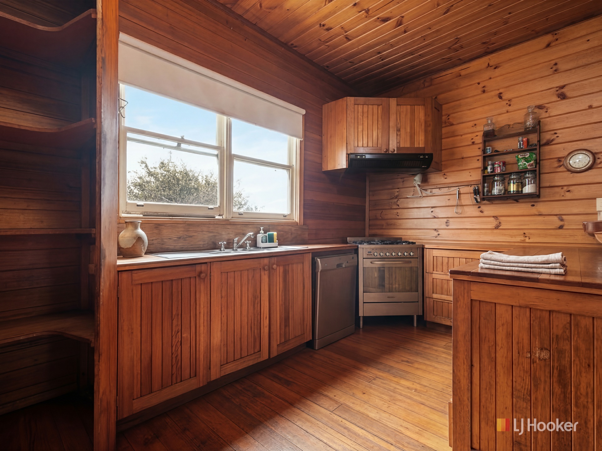 • Timber kitchen with gas cooktop and pantry