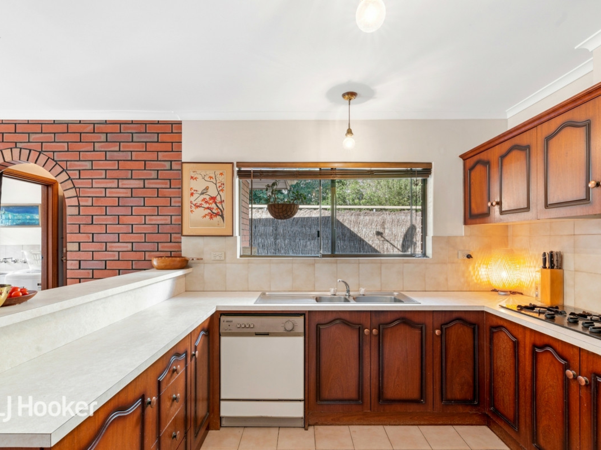 Bifold doors separate the formal part of the home from the casual area. A large timber kitchen, complete with gas cooktop, electric oven and dishwasher, is the hub of the home. An abundance of cupboards, plus a floor to ceiling pantry mean that there is plenty of room for all of your pots and pans.