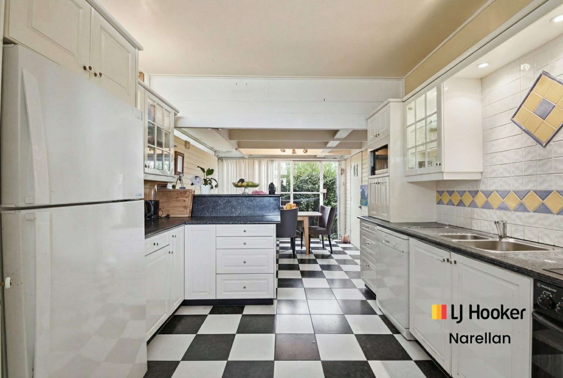 • Central kitchen with adjoining dining room
