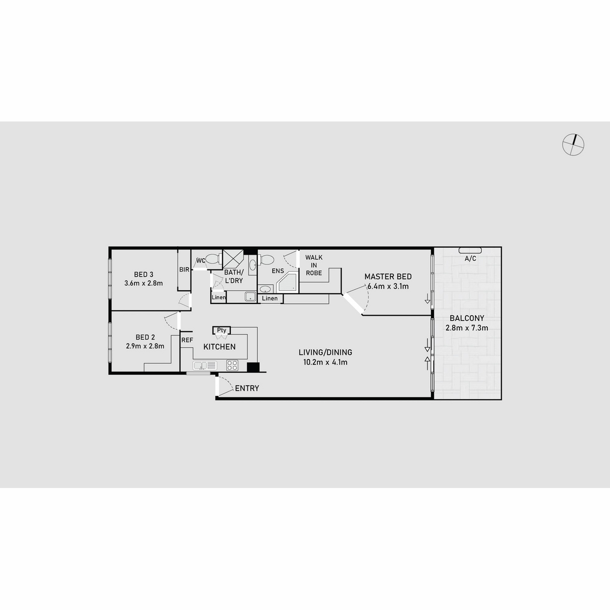 • 3 Bedrooms, 2 with built in wardrobes and main with walk in wardrobe