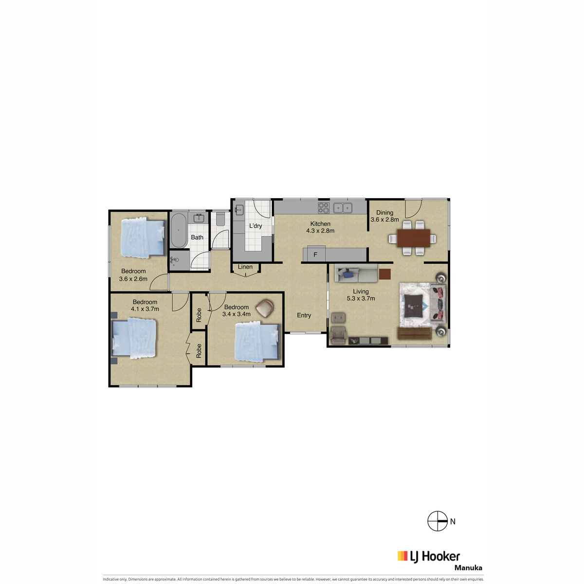 Inside, a light-filled living area provides plenty of room to unwind, while the functional floor plan connects seamlessly to the outdoor spaces. The quiet, family-friendly setting combined with proximity to top schools, cafés, and parks makes this property a rare find in one of Canberra's most popular suburbs.