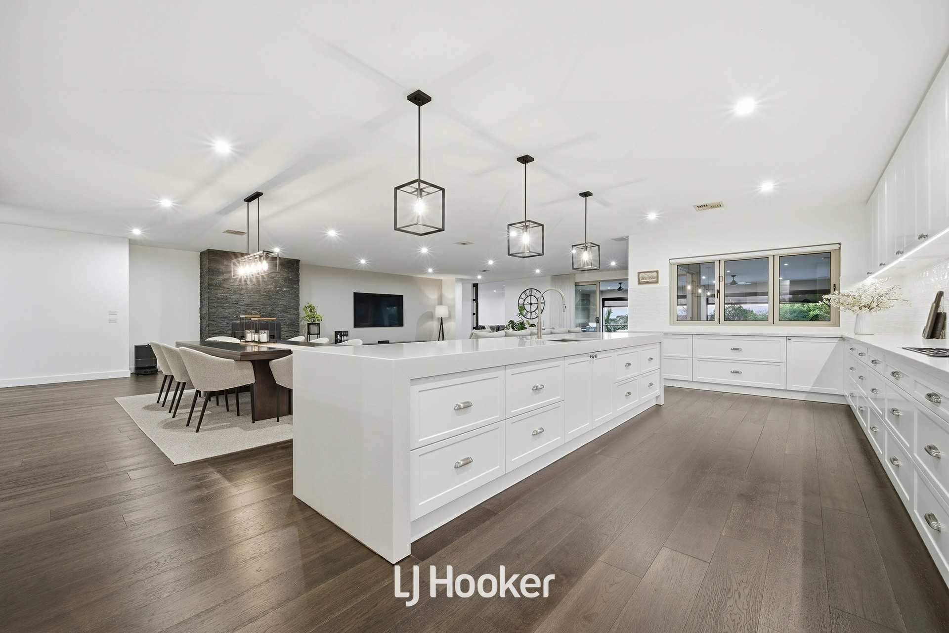 At the heart of the home, a truly expansive kitchen makes an immediate statement, featuring extensive bench space, abundant cabinetry and a highly functional layout that will impress even the most discerning home chef. Seamlessly connected to the open-plan dining and family zones, this central hub is designed for both everyday living and large-scale entertaining.