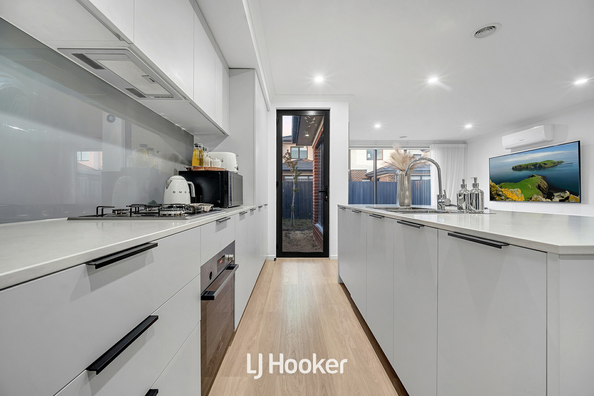 Upon entry, you're welcomed into a well-considered floor plan that balances functionality with style. The ground floor features a versatile study or fourth bedroom, positioned alongside a full bathroom-ideal for guests, extended family, or a private workspace. At the heart of the home, the open-plan living and meals area is bathed in natural light, seamlessly connecting to a stylish kitchen appointed with stone benchtops, quality European stainless-steel appliances, and sleek cabinetry.