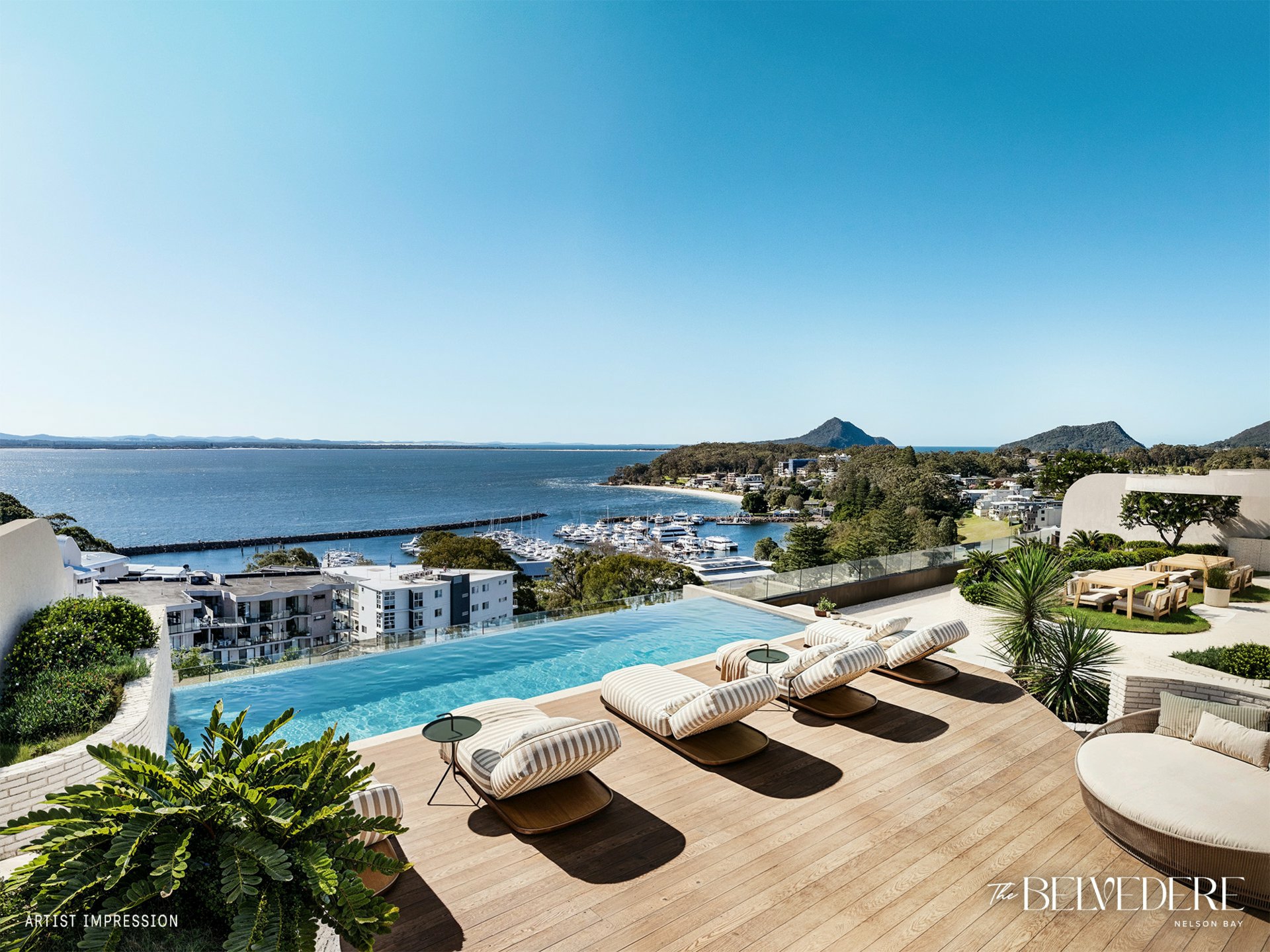 The Belvedere is an exclusive collection of residences that stands proud just 350 metres from the sparkling cerulean waters of Nelson Bay.