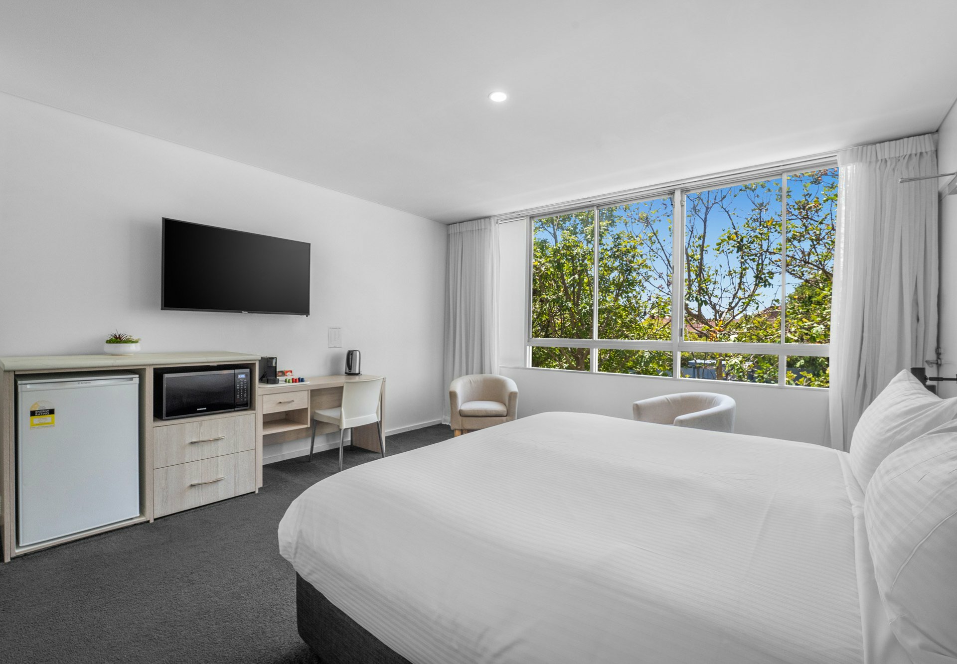 The open-plan layout is enhanced by abundant natural light, a functional kitchenette and comfortable amenities — the ideal relaxing base for your holiday in Port Stephens. Set within beautifully manicured gardens, the Oaks Lure Resort offers resort-style amenities including a swimming pool with children’s wading area, BBQ facilities and secure parking.
