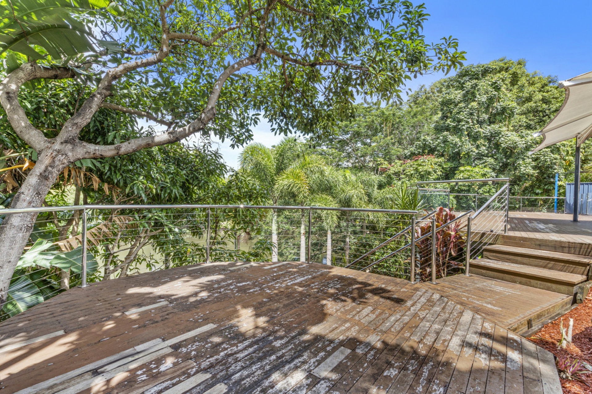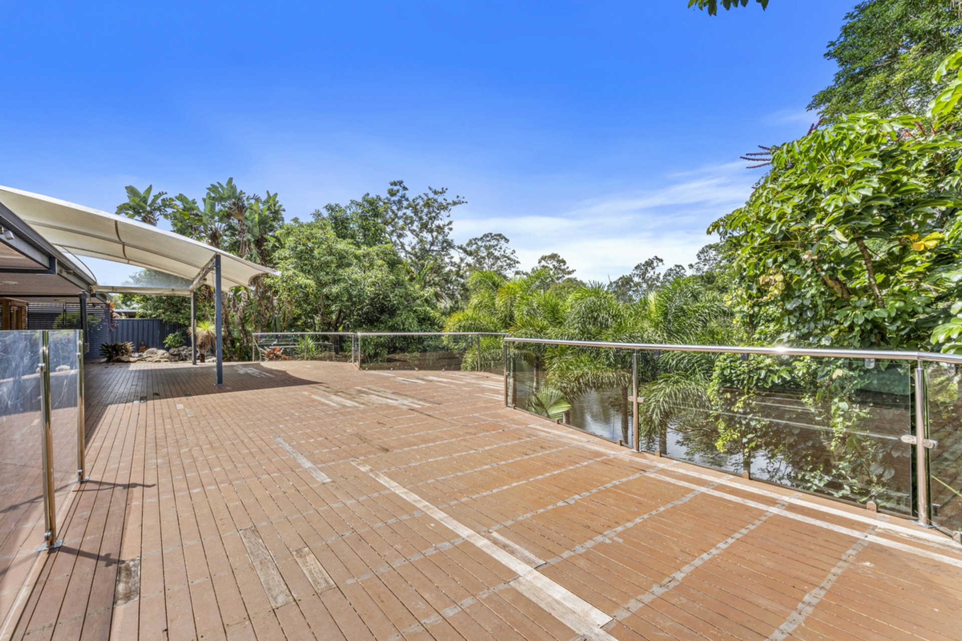 Huge decked entertaining area extending out from the main living area of the home and overlooking the picturesque Nerang River, a phenomenal spot to host parties with your family and friends