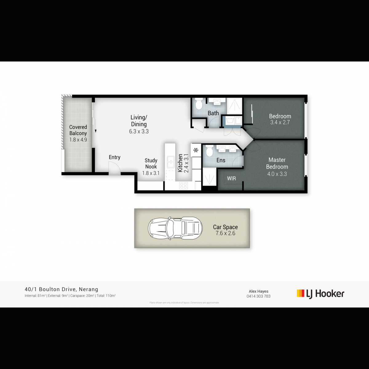 • 2 spacious bedrooms, master with walk in robe and ensuite