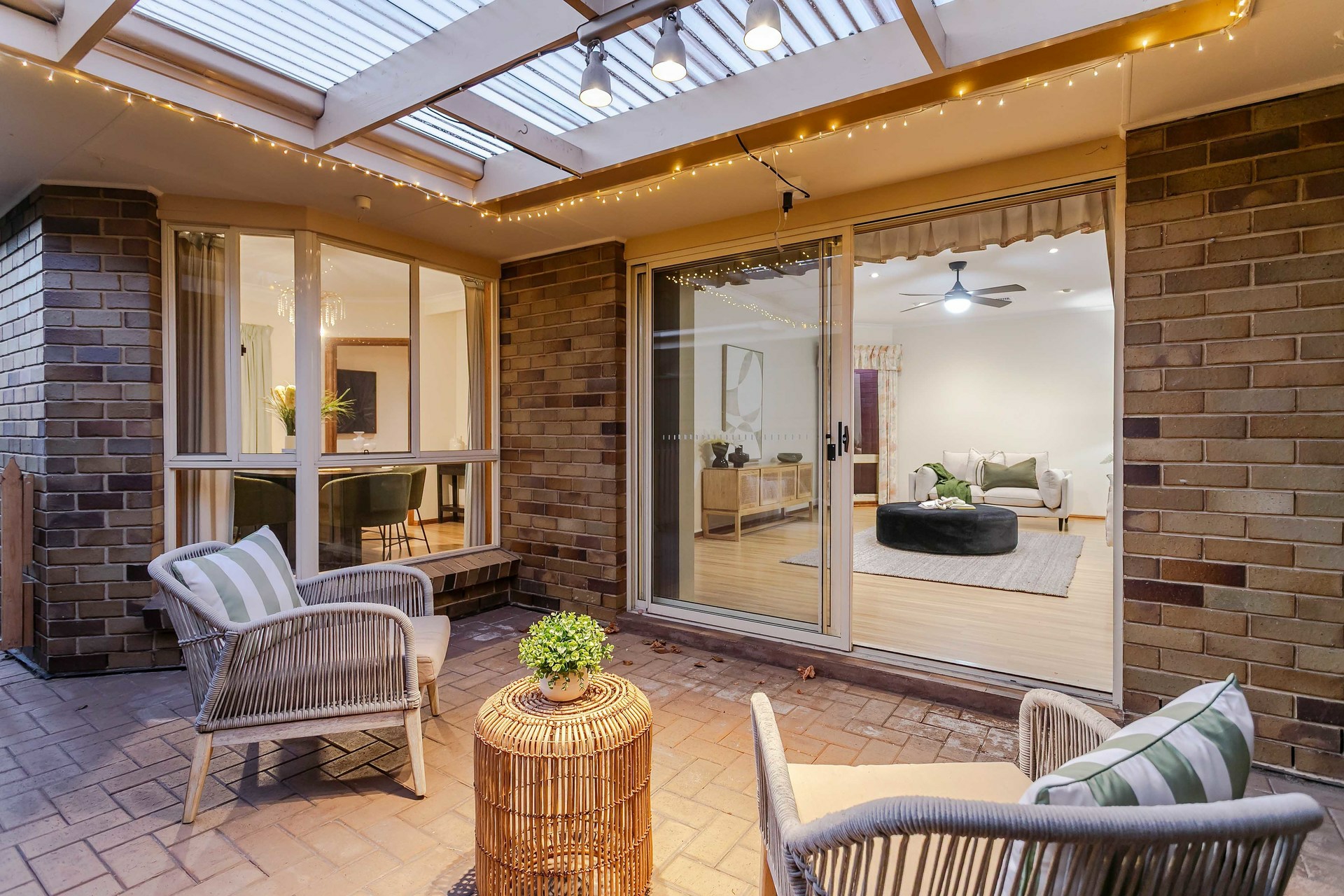 Multiple living areas include a welcoming lounge, formal dining room, and a spacious family and meals area, providing excellent versatility for everyday living and entertaining. The central living room opens to a private courtyard, creating the perfect space to relax or enjoy a quiet morning coffee.