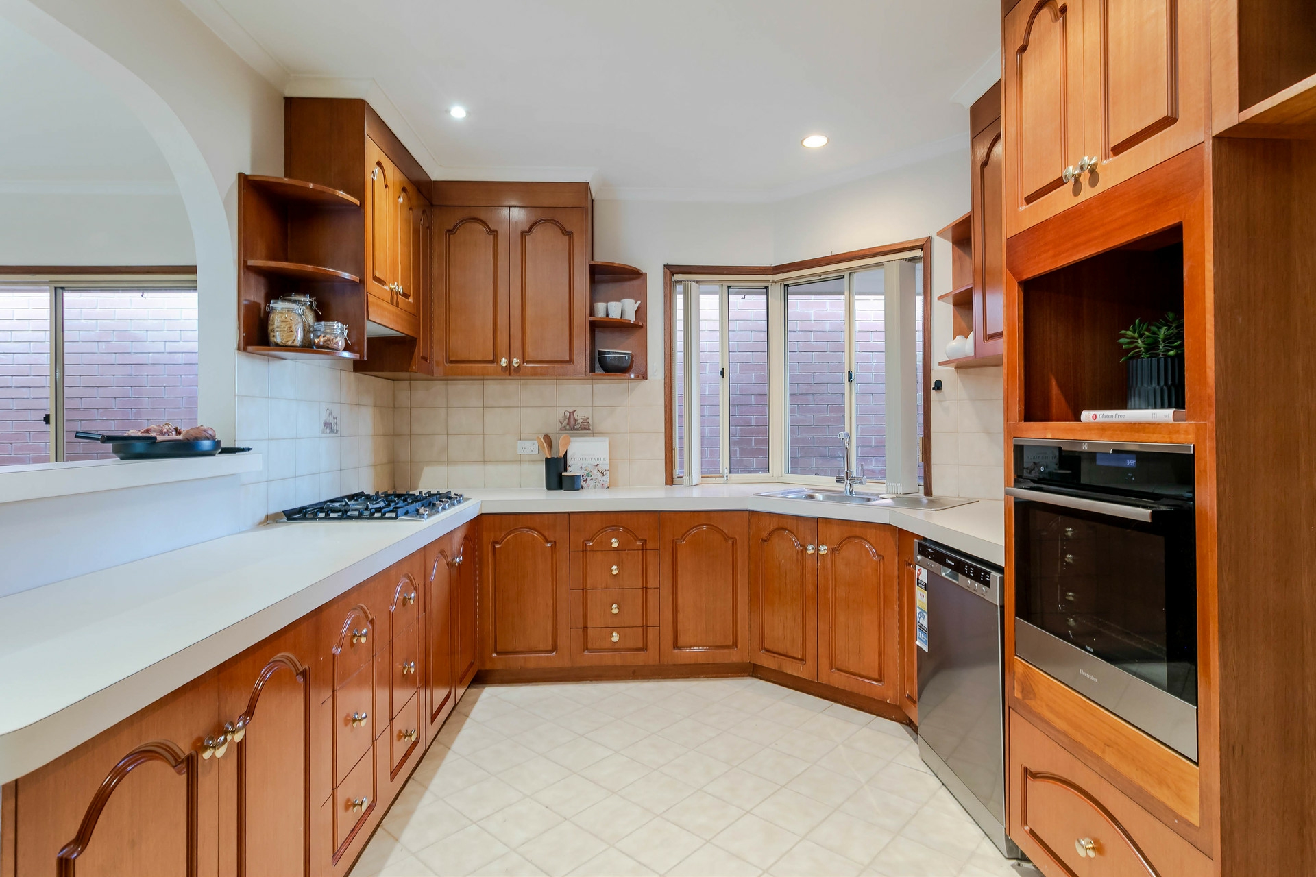 - Functional kitchen with walk-in pantry and gas cooktop