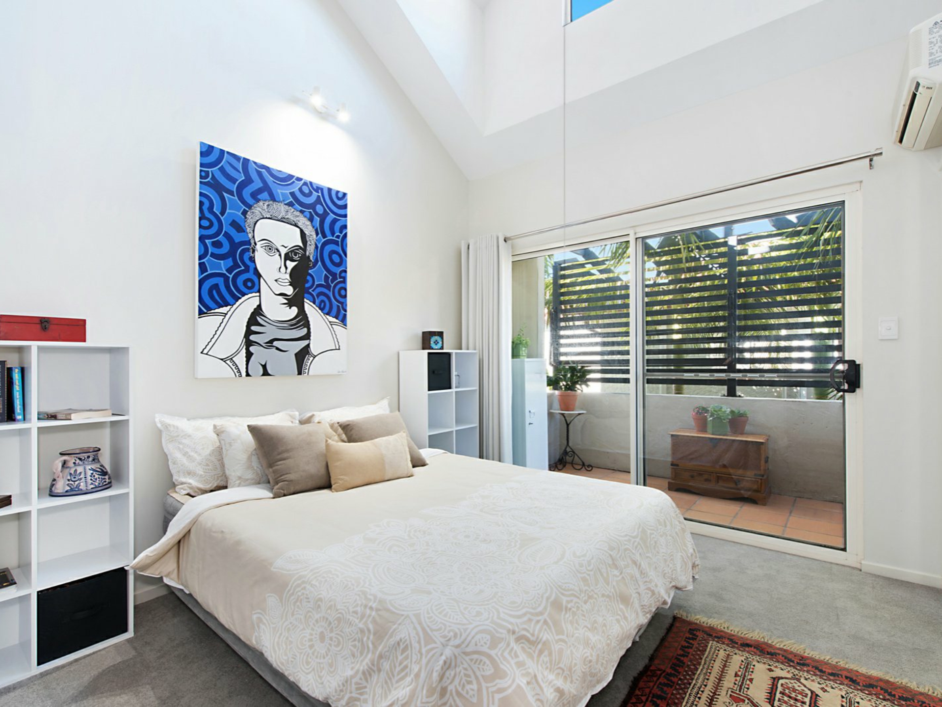 The second bedroom, also opening onto its own balcony features vaulted ceiling and air-conditioning. The second bathroom which incorporates the laundry, is fully tiled with stone bench, 2 pac cupboards and seamless glass walk in shower.