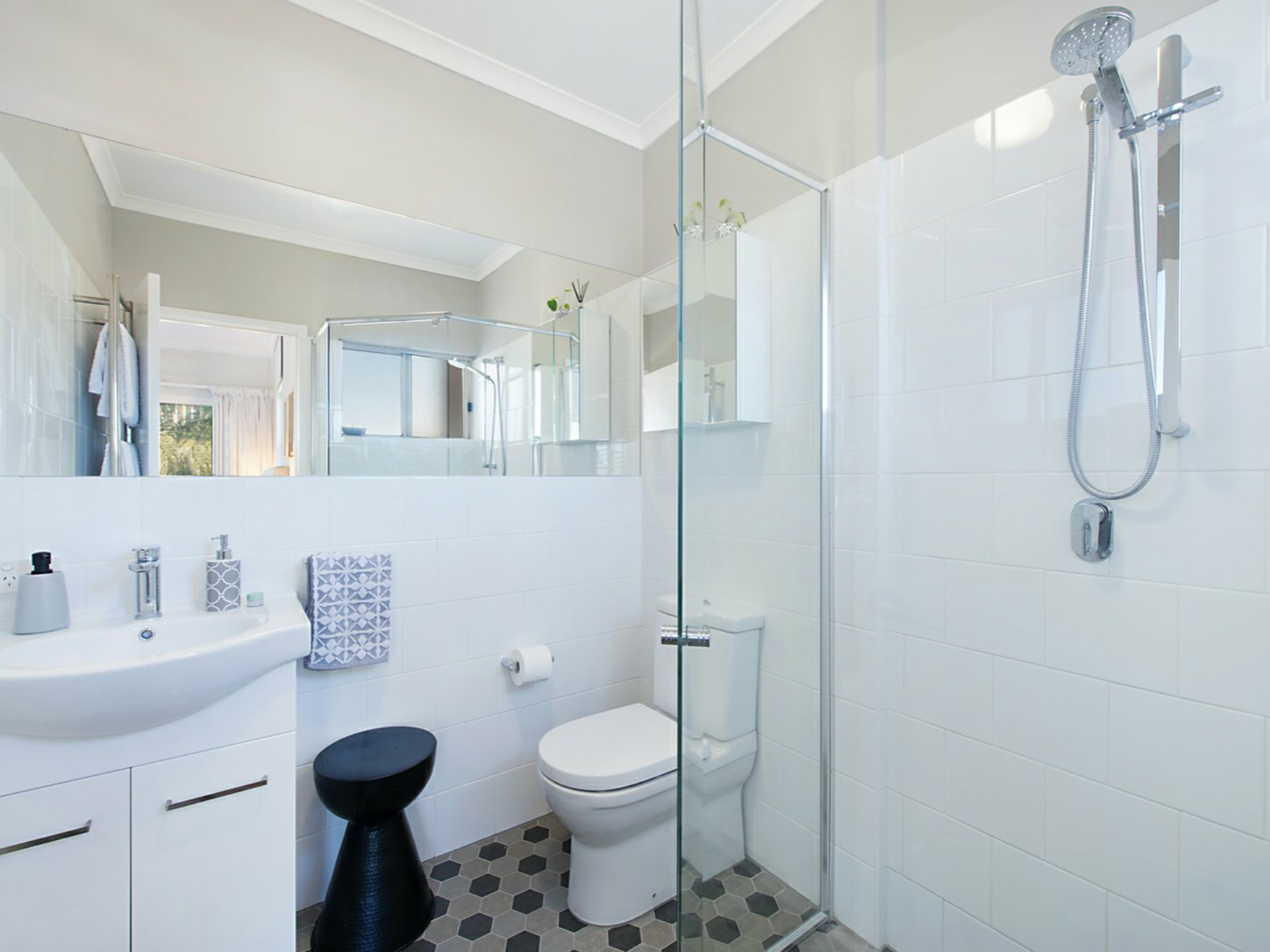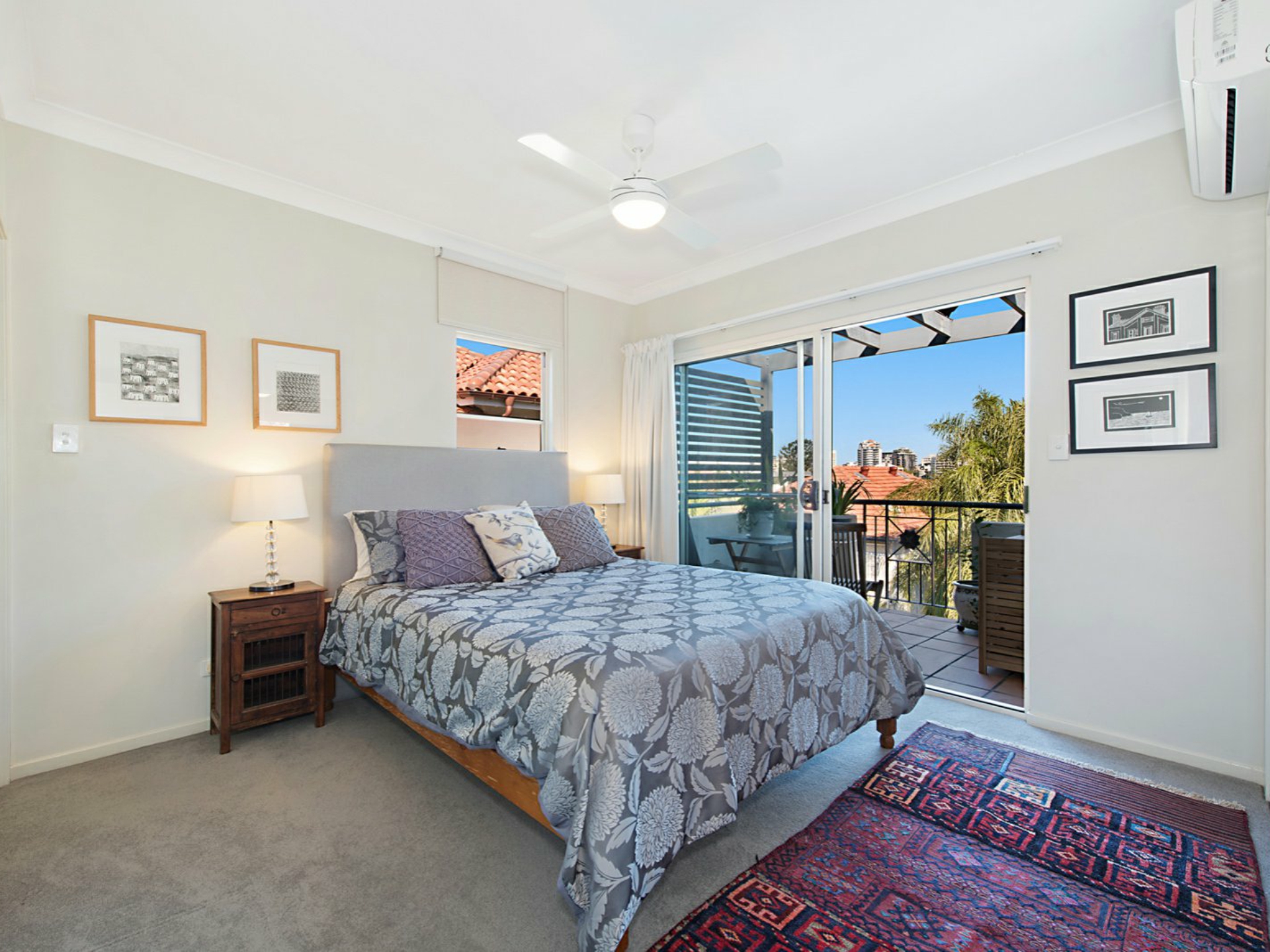 At the rear of the apartment, towards the river is the main bedroom and en-suite; a gorgeous and quiet retreat with its own private balcony and air-conditioning. A great place to enjoy the river glimpses.