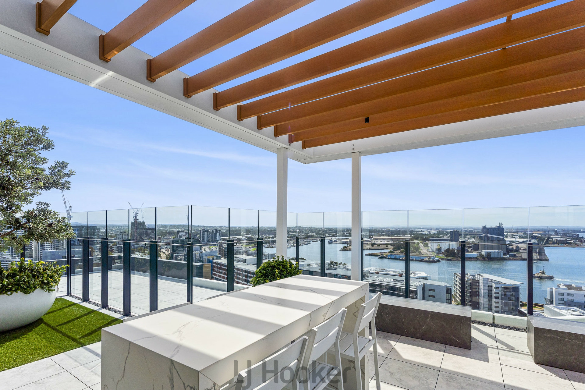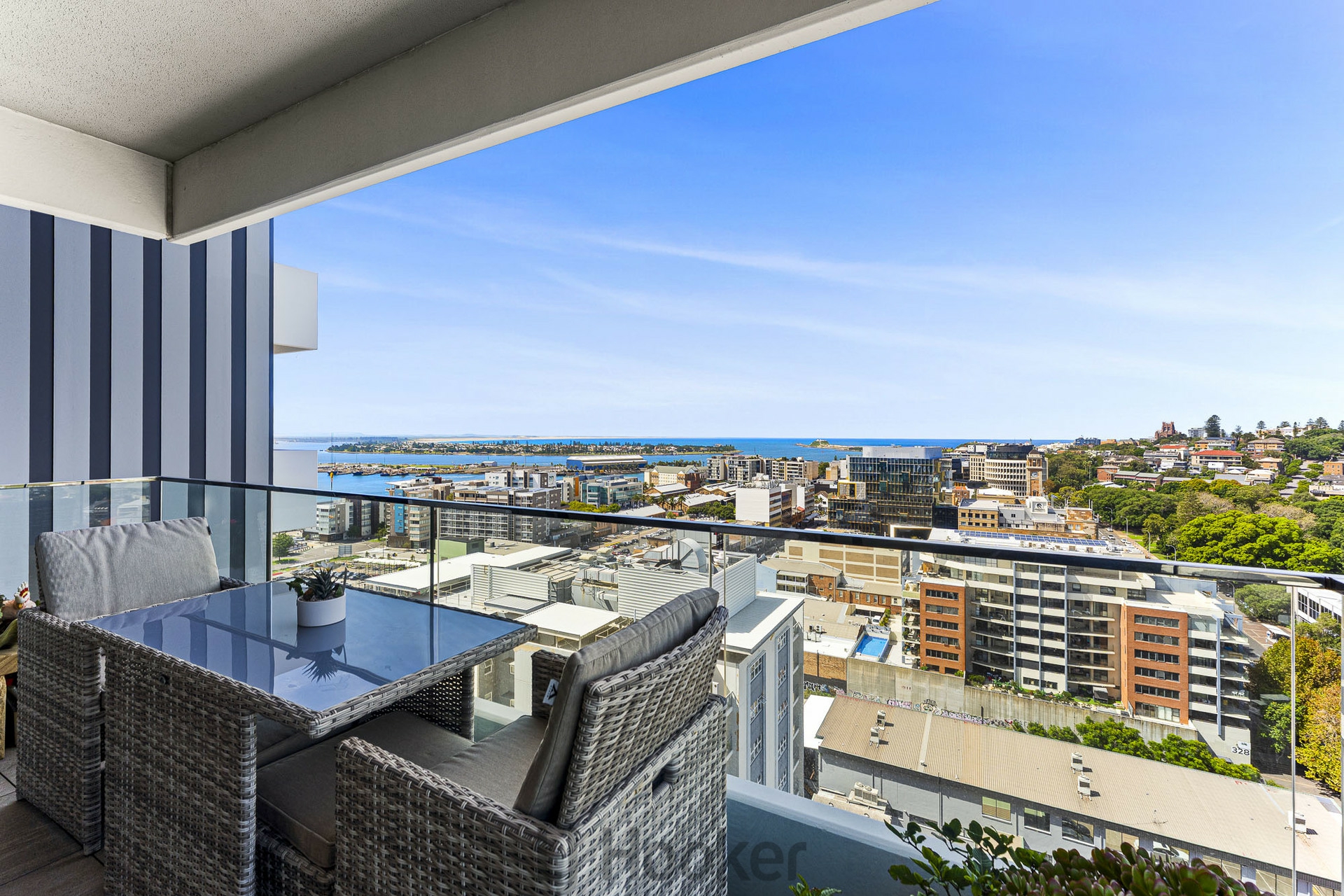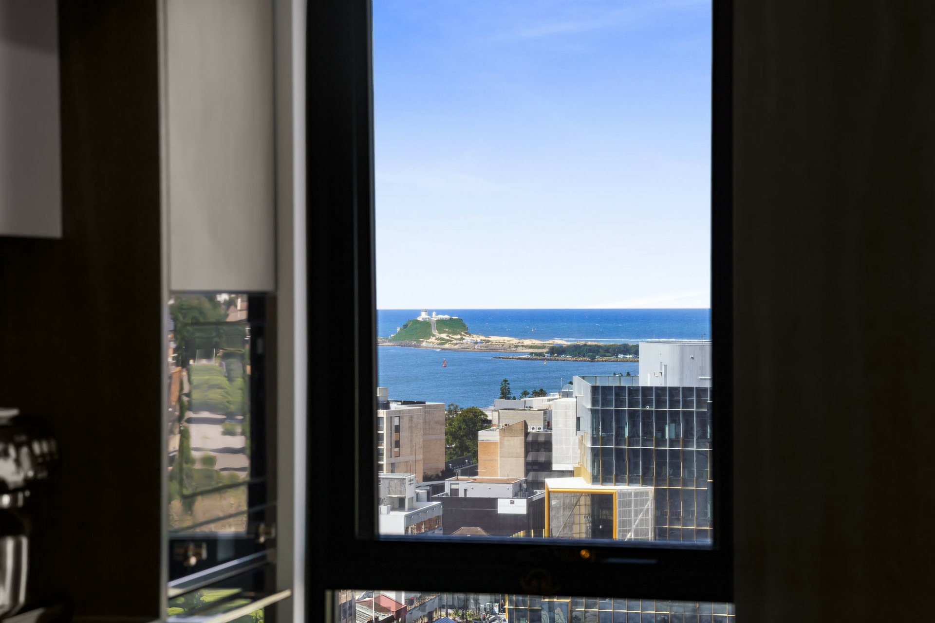 Step onto the private balcony and take in uninterrupted panoramic views sweeping north across the harbour to Nobbys Beach and all the way to Stockton - a spectacular backdrop for morning coffee or simply watching the ships glide into port.