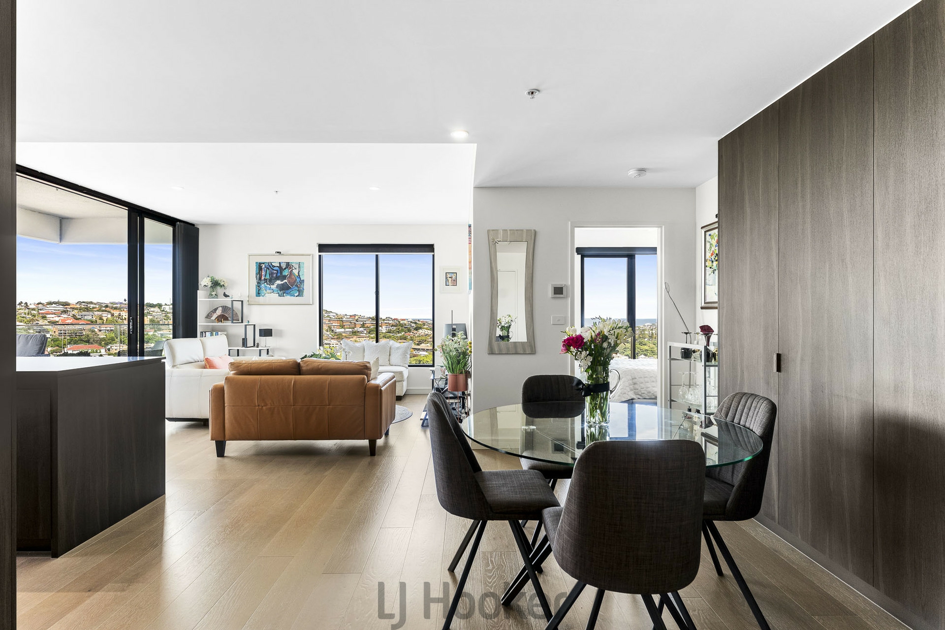 Designed for both comfort and functionality, the apartment features two generous bedrooms and two stylish bathrooms, including a master ensuite. At the heart of the home sits a beautifully designed modern kitchen featuring premium Smeg appliances. The deep kitchen island creates the perfect setting for entertaining, allowing you to prepare meals, serve drinks and host guests while still enjoying the incredible surround.