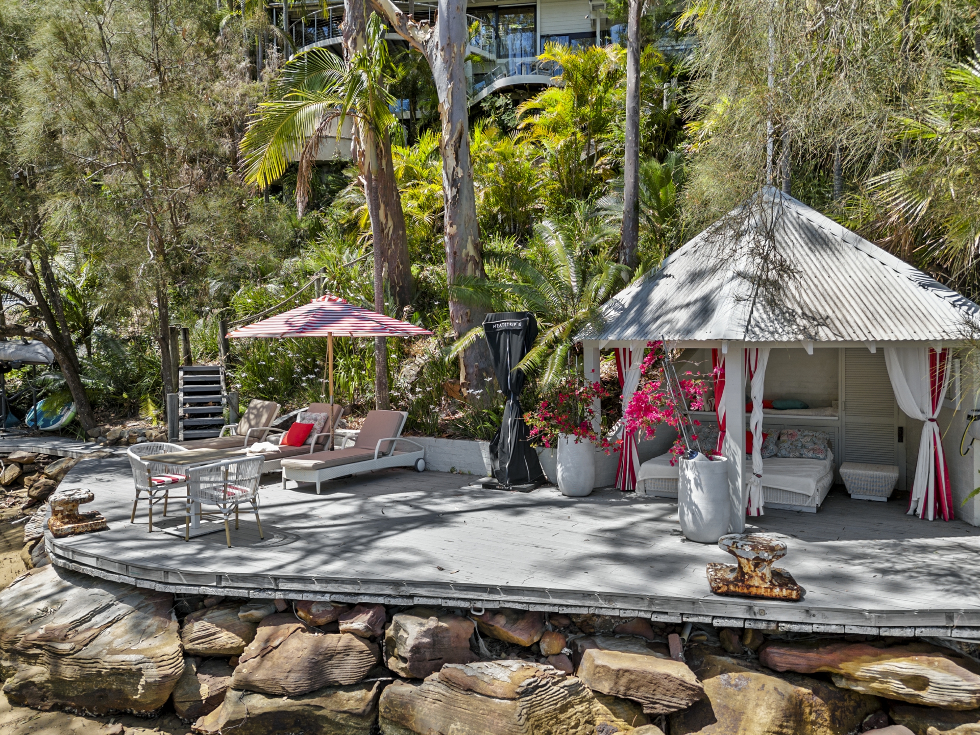 • Expansive entertaining terraces and tiered landscaped gardens with tropical plantings and sandstone features