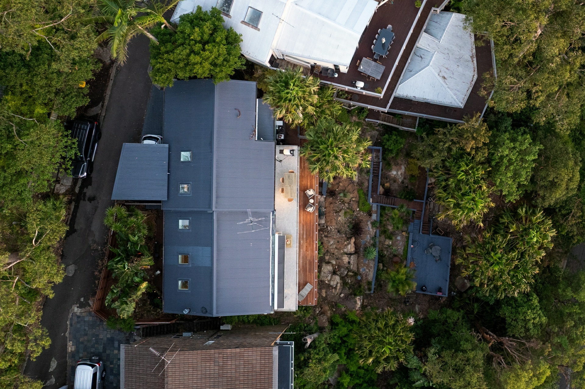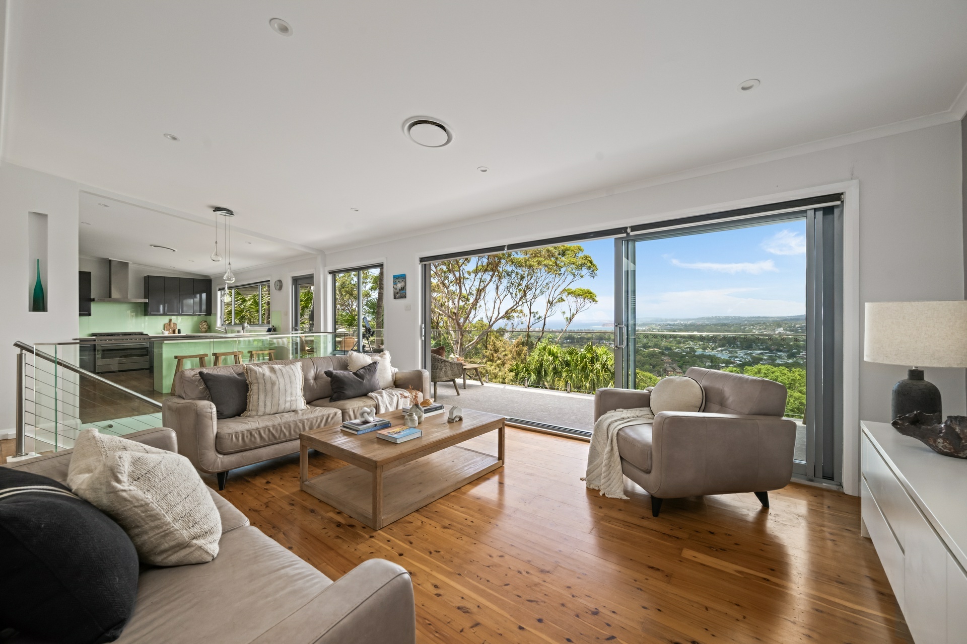 Commanding some of the Northern Beaches most impressive panoramas, this elevated four bedroom home captures leafy views across Pittwater's boat-studded waters, the ocean horizon and all the way to South Head. Set among the treetops, it feels wonderfully secluded, offering four bedrooms plus a dedicated home office, raked ceilings, timber floors and generous open plan living following a renovation five years ago.