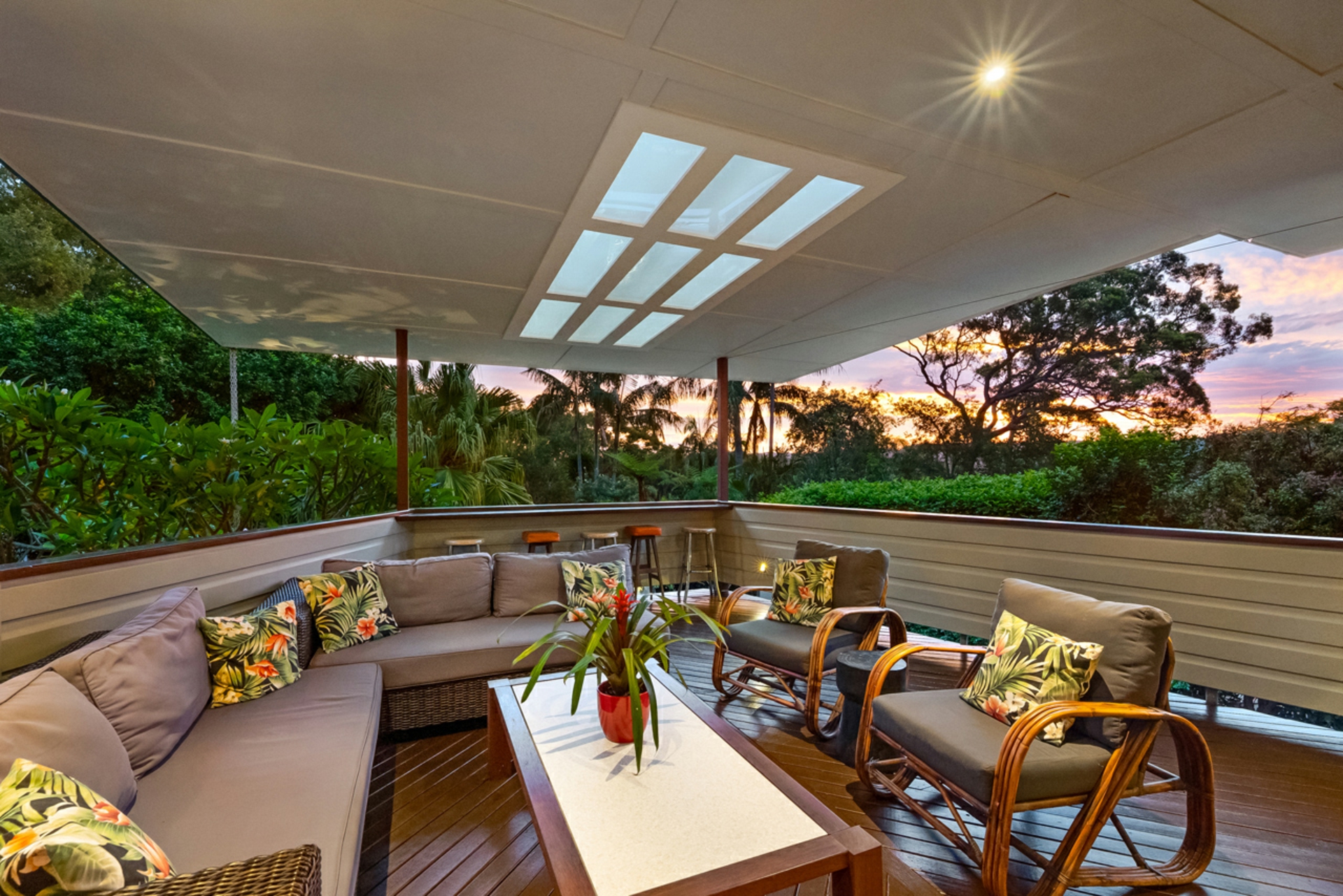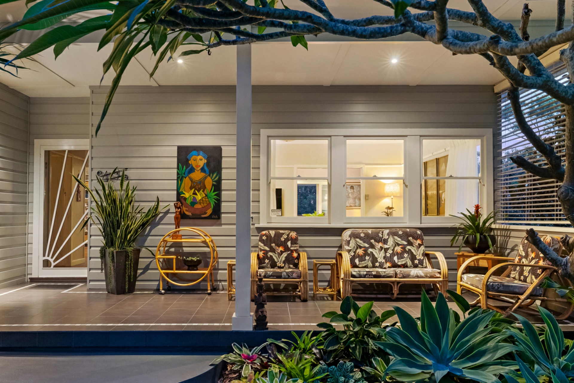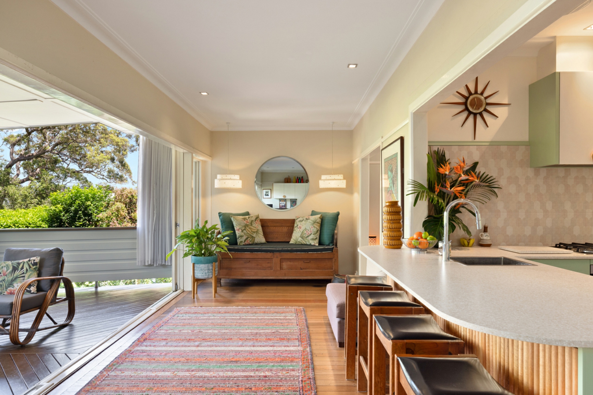It's a home with soul, where retro character and relaxed Northern Beaches style live in perfect harmony. A true passion project, the interiors are warm, welcoming and effortlessly cool, capturing coastal breezes and a distinctly tropical vibe. Open plan living and dining spaces invite you to slow down, stretch out and enjoy the rhythm of family life, while a seamless connection to outdoor zones makes entertaining feel natural and easy. Step outside to your very own sun-drenched north-facing balcony off the master retreat - perfect for your morning coffee, or retreat to the generous rear deck where a Hawaiian-inspired lanai style deck flows to a private backyard wrapped in established tropical gardens. It's your own secluded sanctuary designed for relaxation.