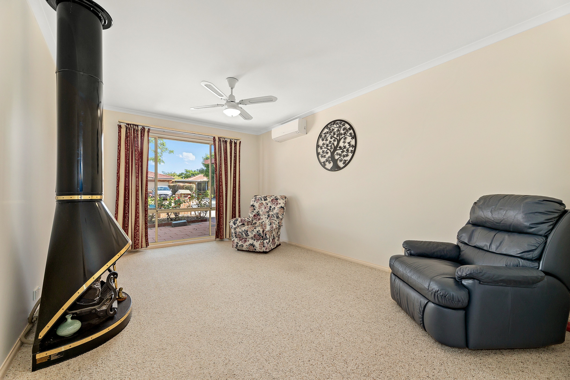 Year-round comfort is assured with three split-system air conditioning units, as well as ceiling fans throughout, complemented by the warmth of the gas fireplace during cooler months.