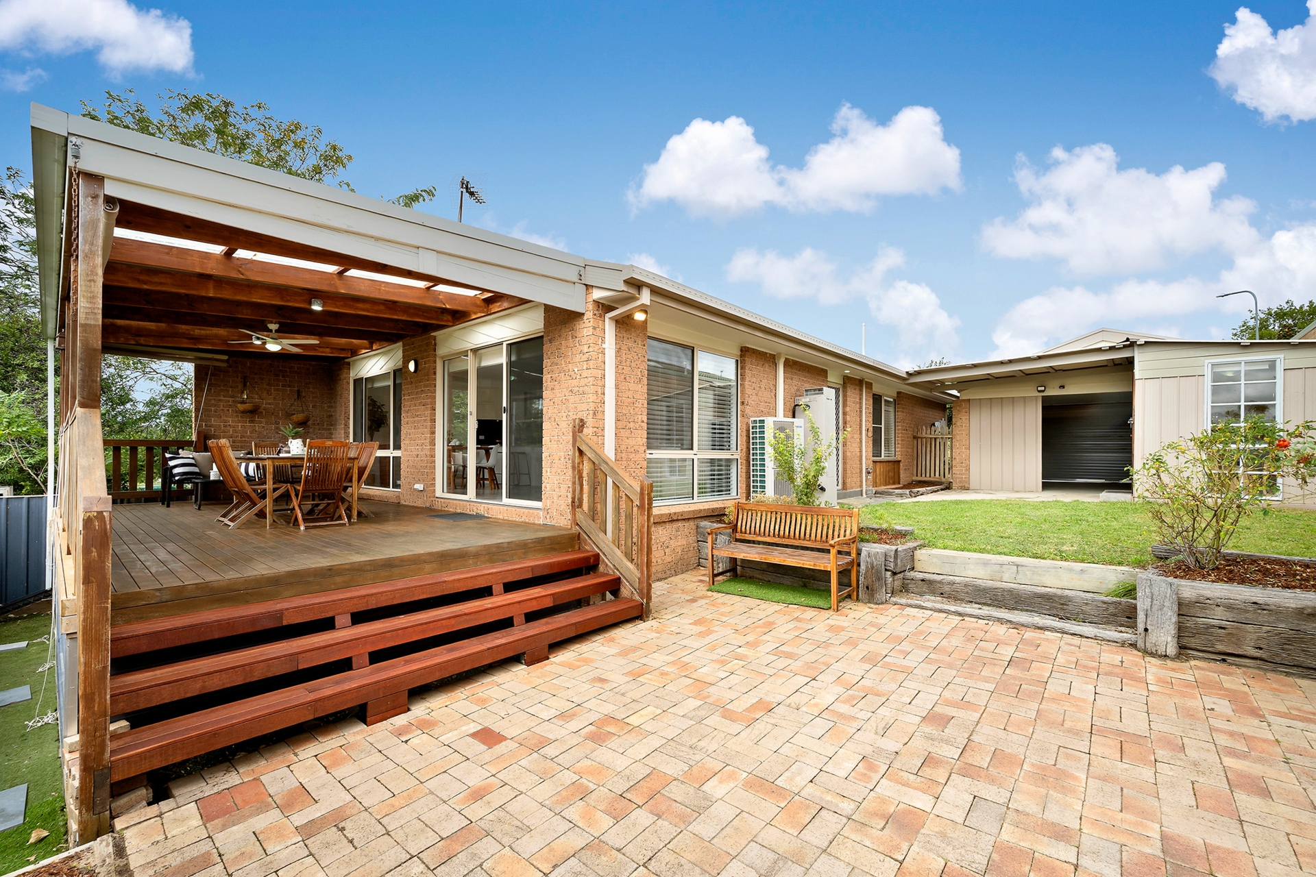 The backyard continues the theme of easy living. Tiered for practicality, it offers a flat grassed area, paved sections, a shed, garden beds and a neatly tucked away clothesline.