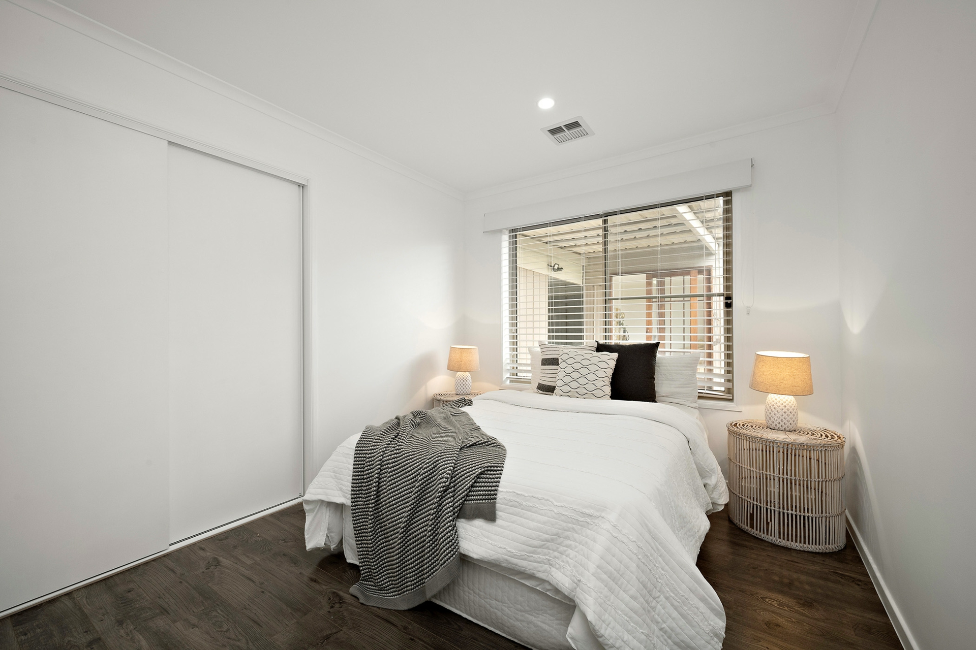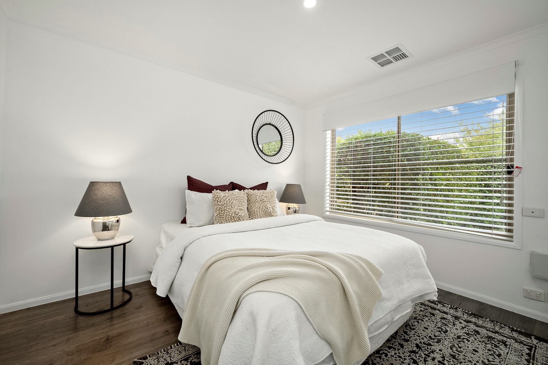 The three bedrooms are all well sized, each fitted with Venetian and roller blinds. As well as double glazed windows throughout and reverse cycle heating and cooling so everyone's comfortable year-round. The flooring shifts here to a warm timber-look finish, adding a softer, cosier feel where it matters most.