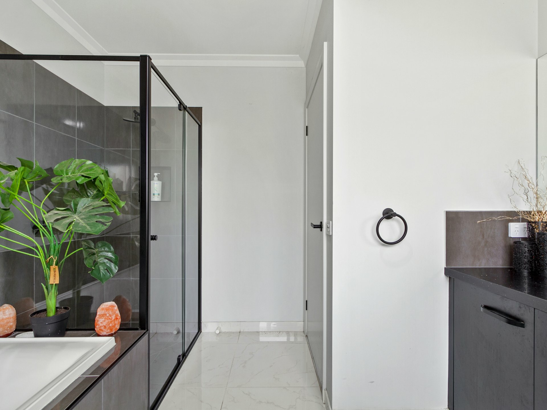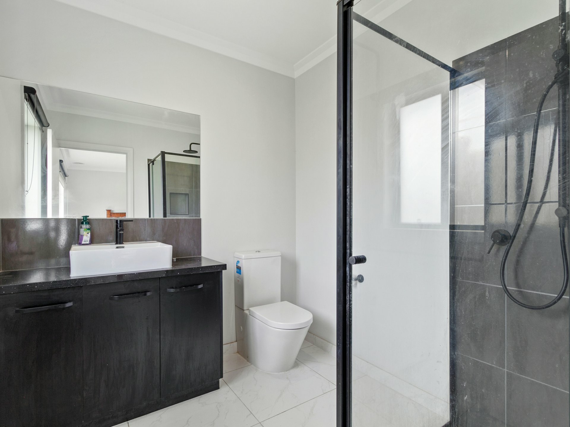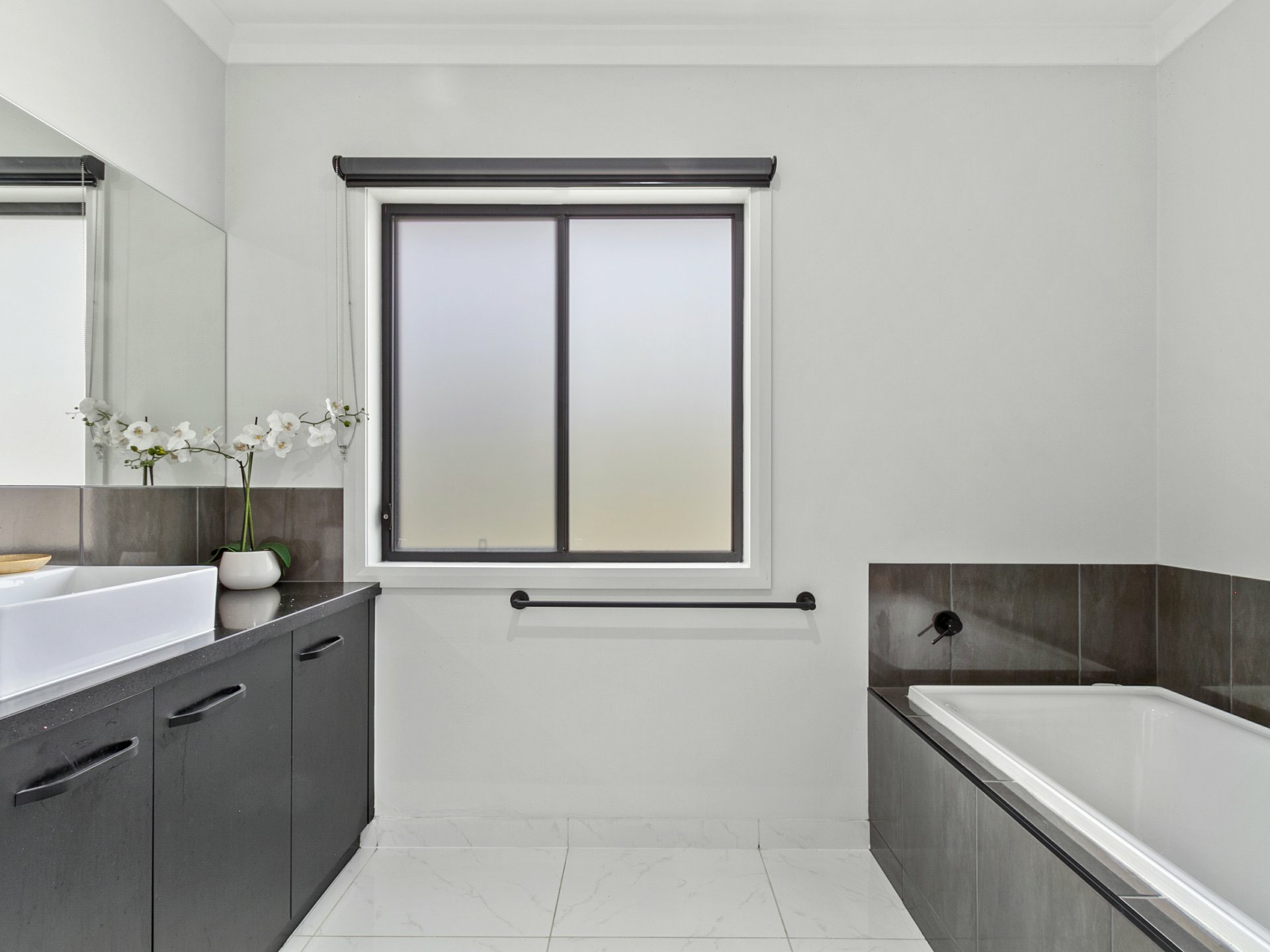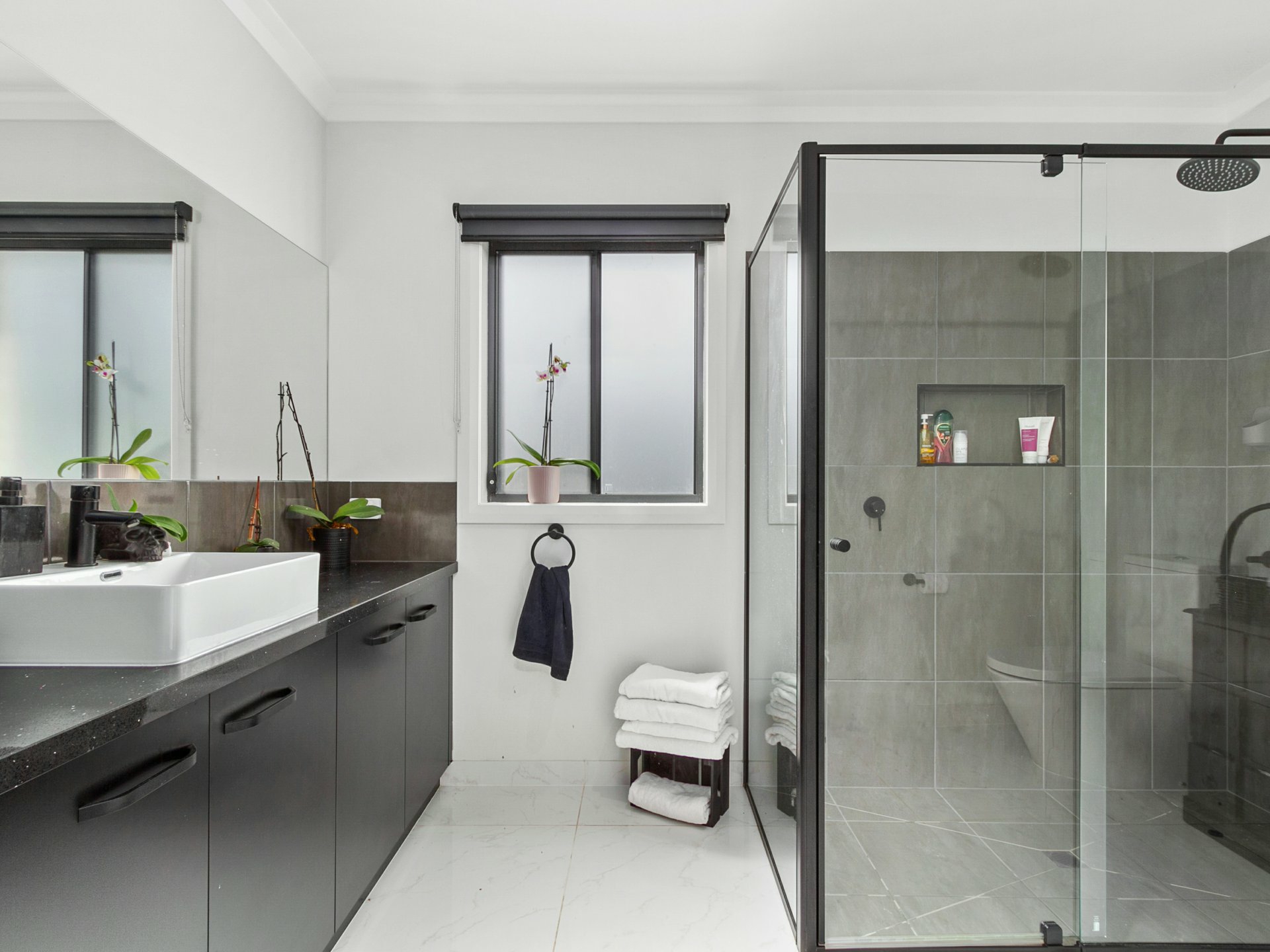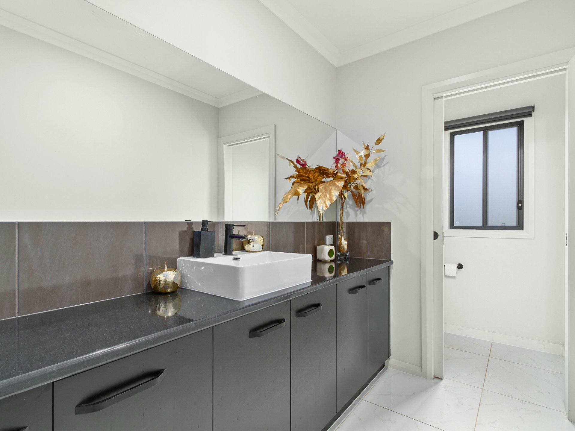 The stylish family bathroom, large powder room, and a big laundry with plenty of storage enhance the functionality of the home. Plus, there’s a double garage with extra storage space offering additional practicality.