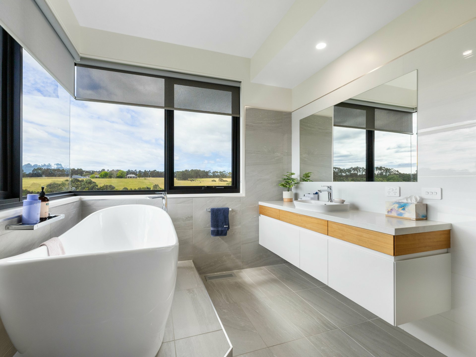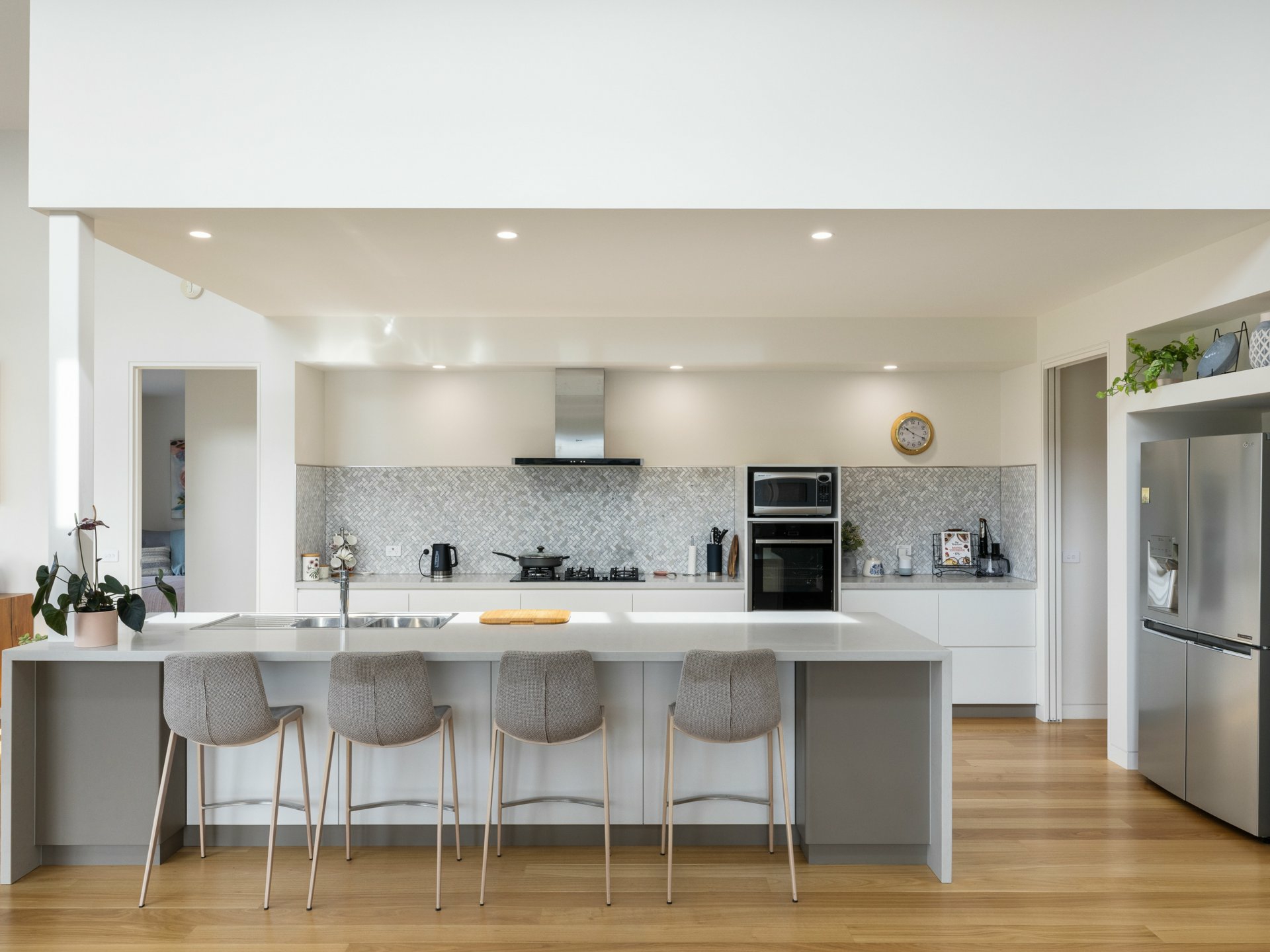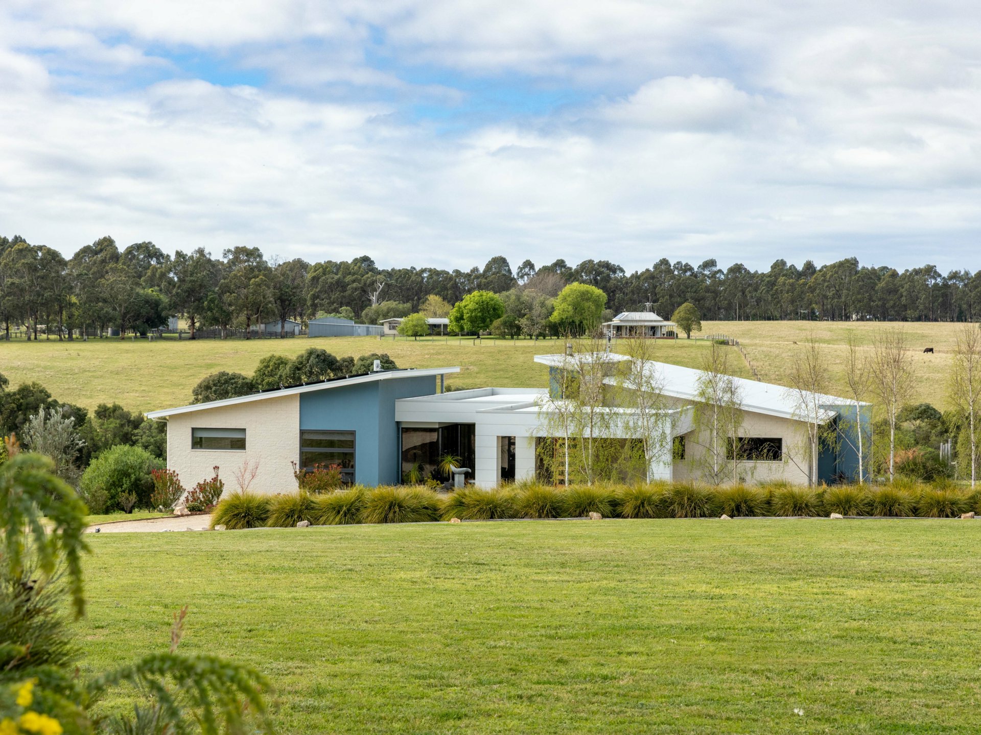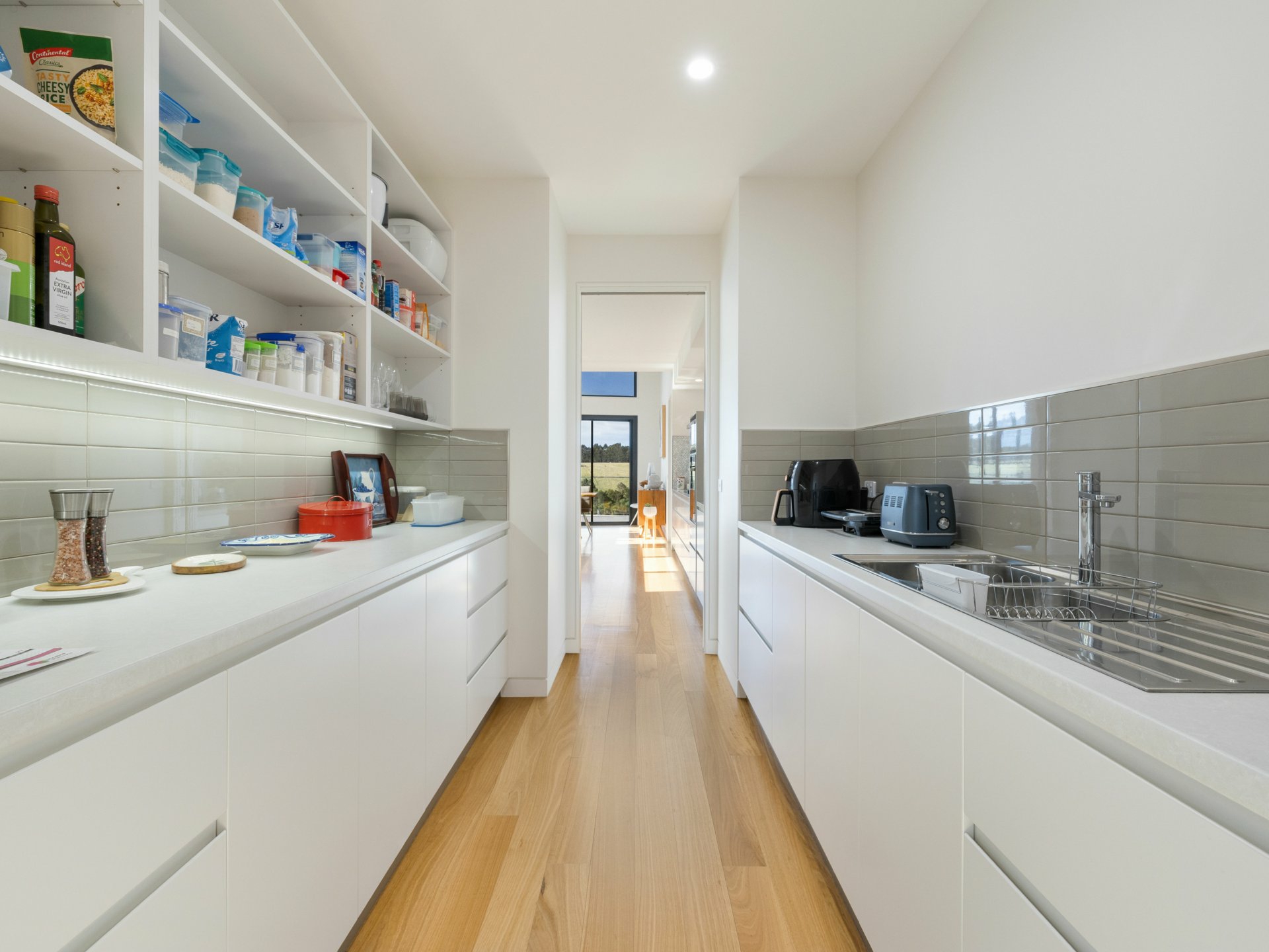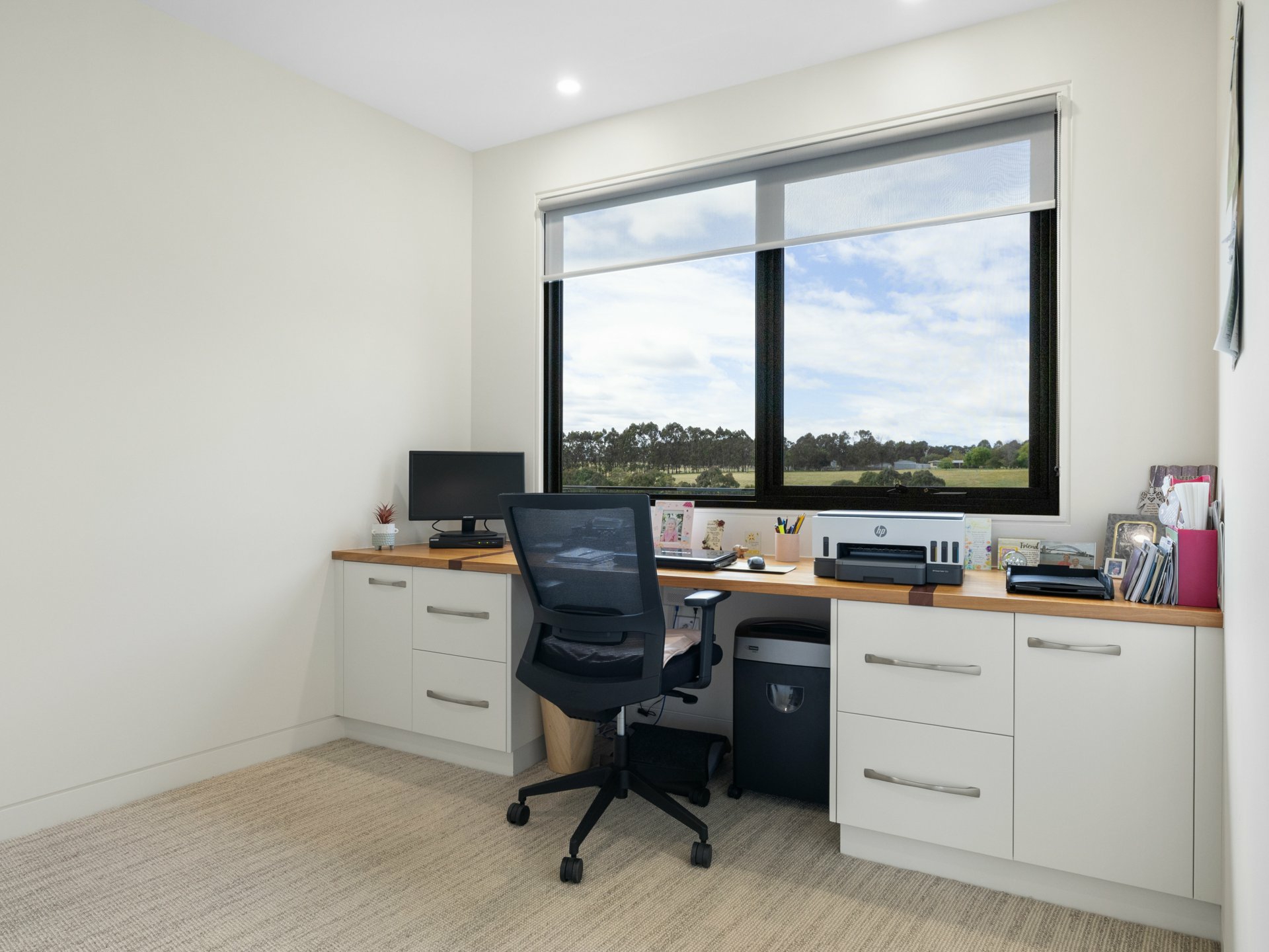 The kitchen is a true centrepiece with stone benchtops, Bosch gas hotplates, a Neff electric oven and range hood, plus a Miele dishwasher. Celestial windows open at the touch of an electronic keypad, bringing the outside in, while a walk-through butler’s pantry provides additional convenience. Polished hardwood timber floors add character and warmth, complemented by a Coonara wood heater and a Daikin zoned reverse cycle system for year-round comfort. Bedrooms feature plush wool carpets and ceiling fans, while wet areas are finished with quality tiling.