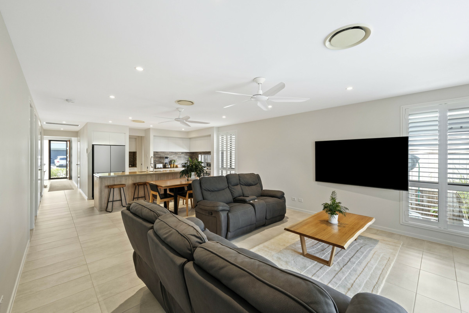 Additional features include plantation shutters throughout, security screens, an internal laundry, and a double garage with a sleek epoxy-coated floor. A 6.5kW solar system adds energy efficiency and the fully fenced yard is perfect for pets and young kids