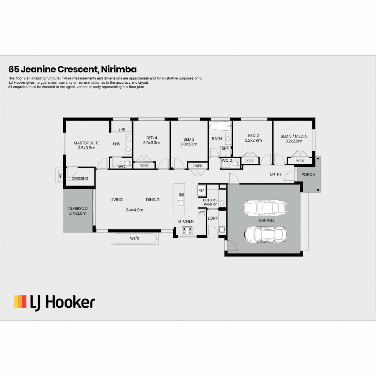 Offering four generous bedrooms plus a separate media room or potential fifth bedroom, this home provides the flexibility families need without compromising on space or functionality. High ceilings and ducted air conditioning create a light-filled, comfortable environment all year round.