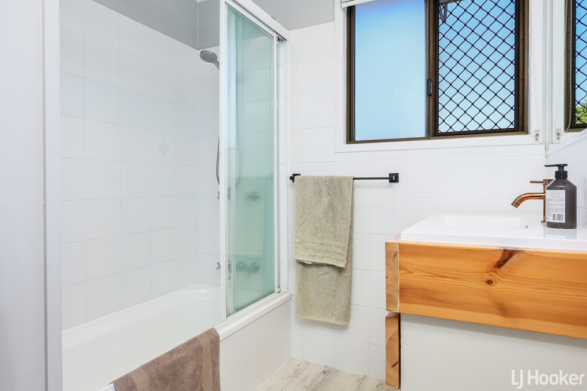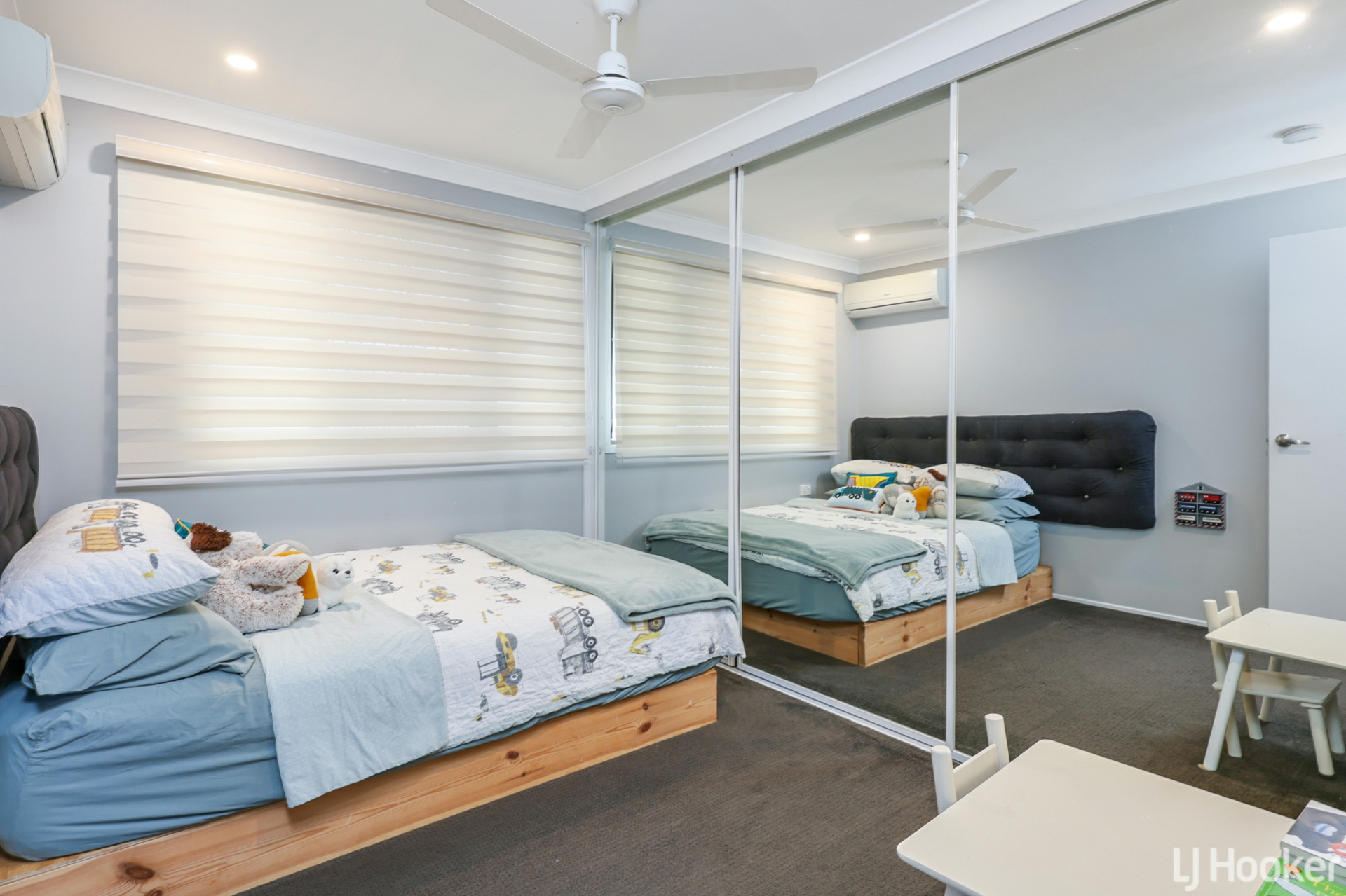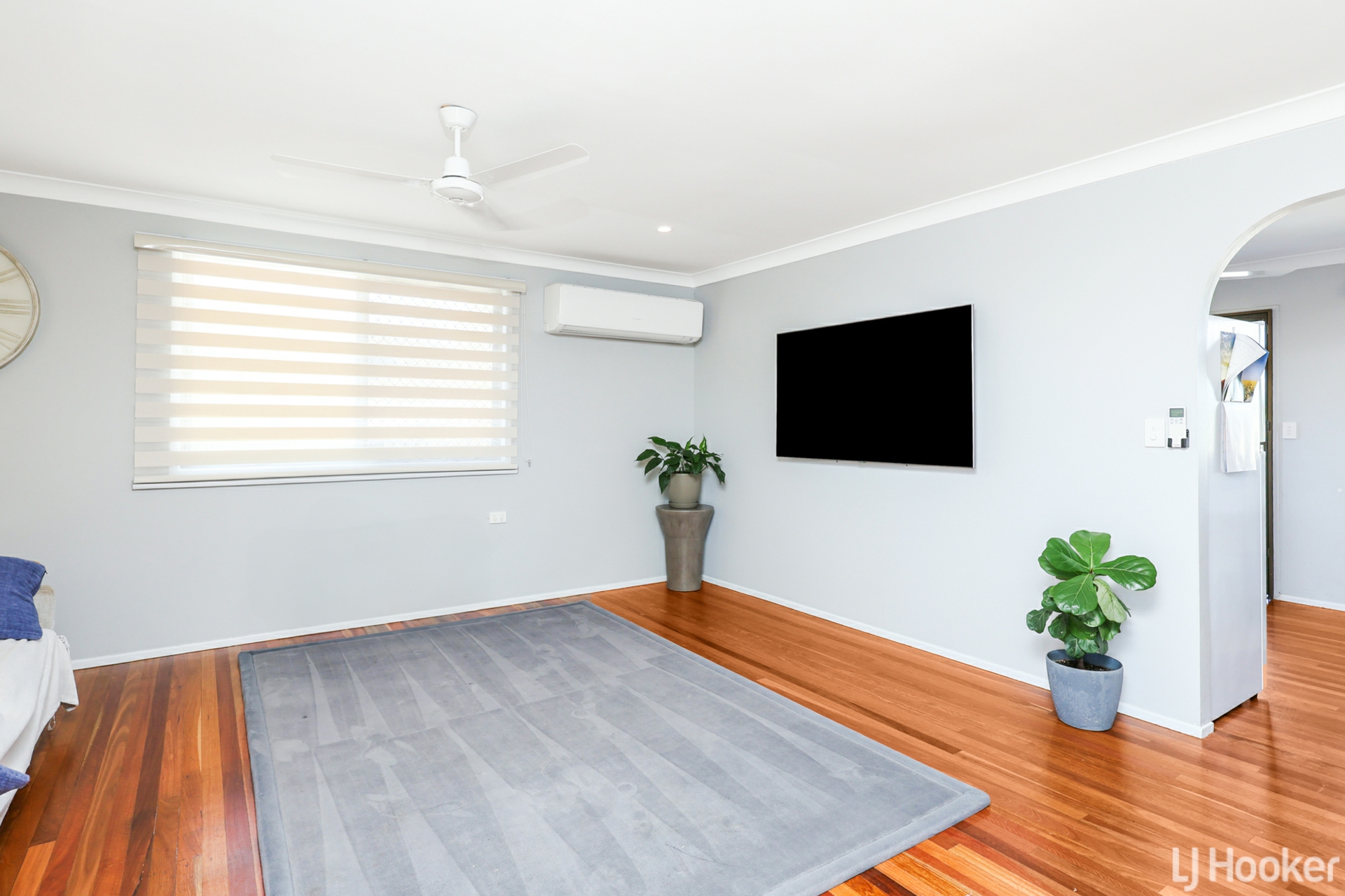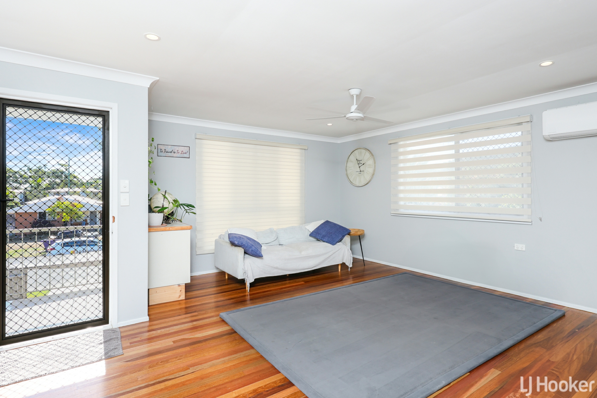 Upstairs, the home features a spacious, light-filled living area with beautifully polished timber floors that flow throughout. The modern kitchen and bathroom are both tastefully updated, while all three bedrooms include built-in robes, ceiling fans, and split system air conditioning for year-round comfort.