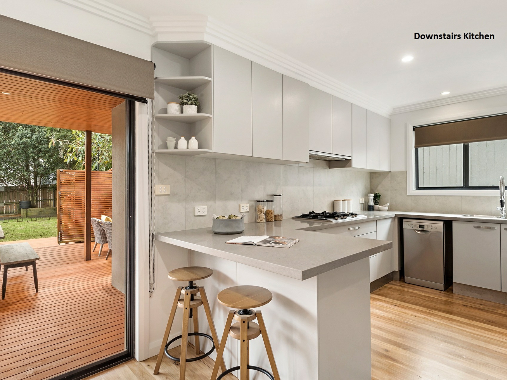 • Sleek open plan stone and gas kitchen with s/steel dishwashers