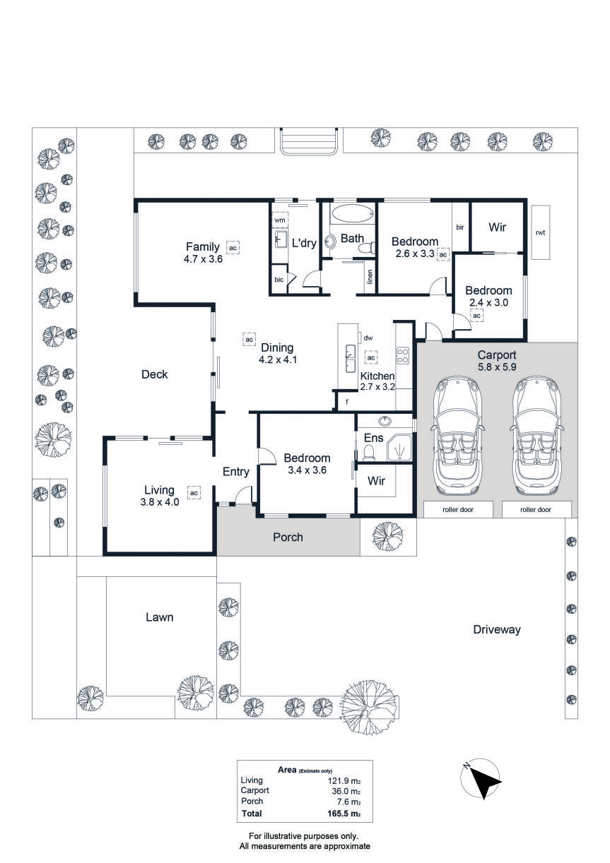 - Secure double carport with roller doors