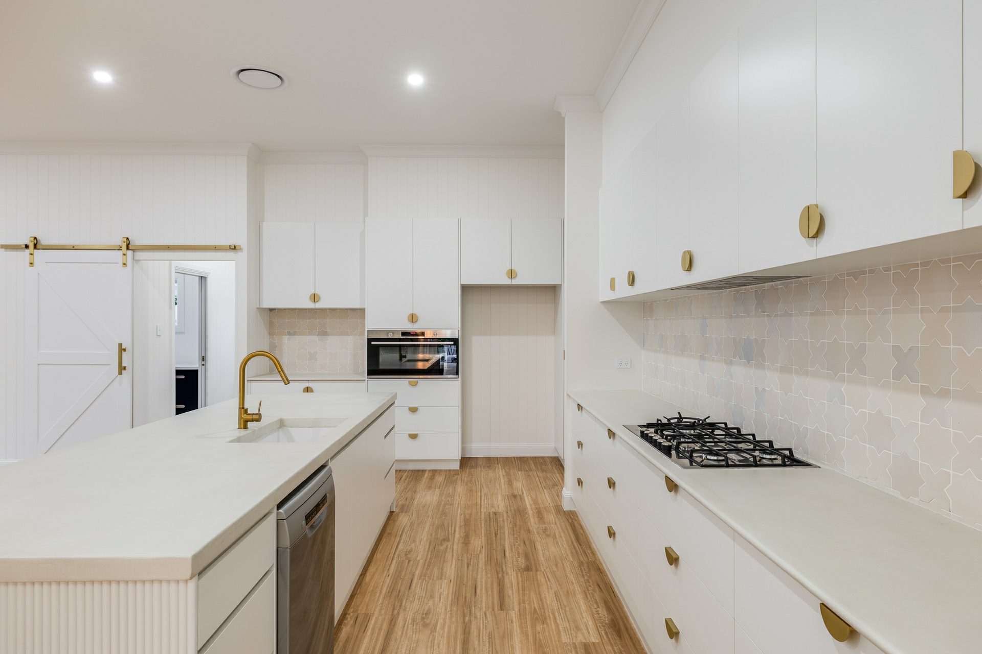 The galley-style kitchen can only be described as exquisite. Featuring a huge, polished concrete island bench, a double fridge space, a gas cooktop, appliances of the highest quality, and its own butler's pantry.