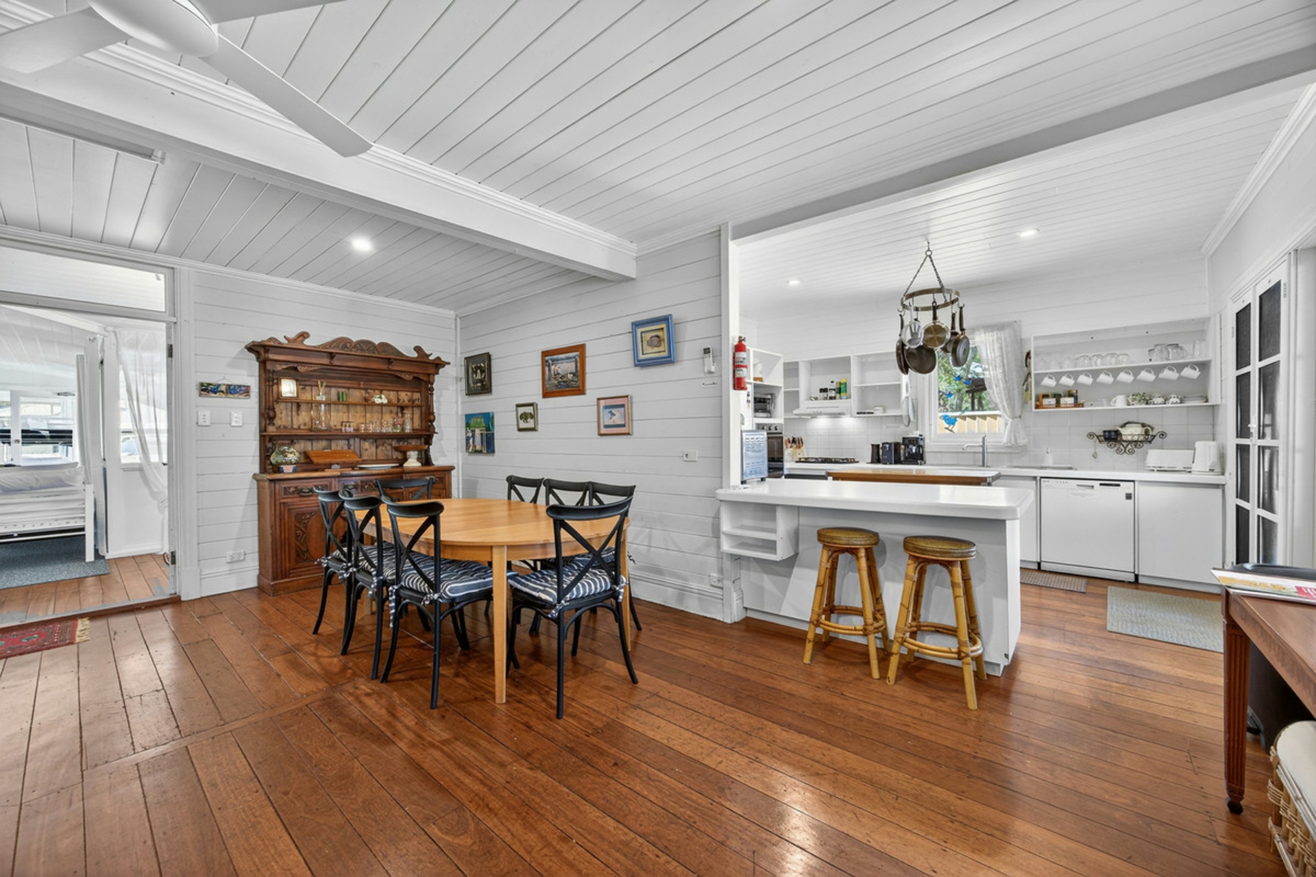 The charming weatherboard and iron home, thoughtfully extended and renovated by a previous architect owner, blends timeless cottage appeal with modern functionality.