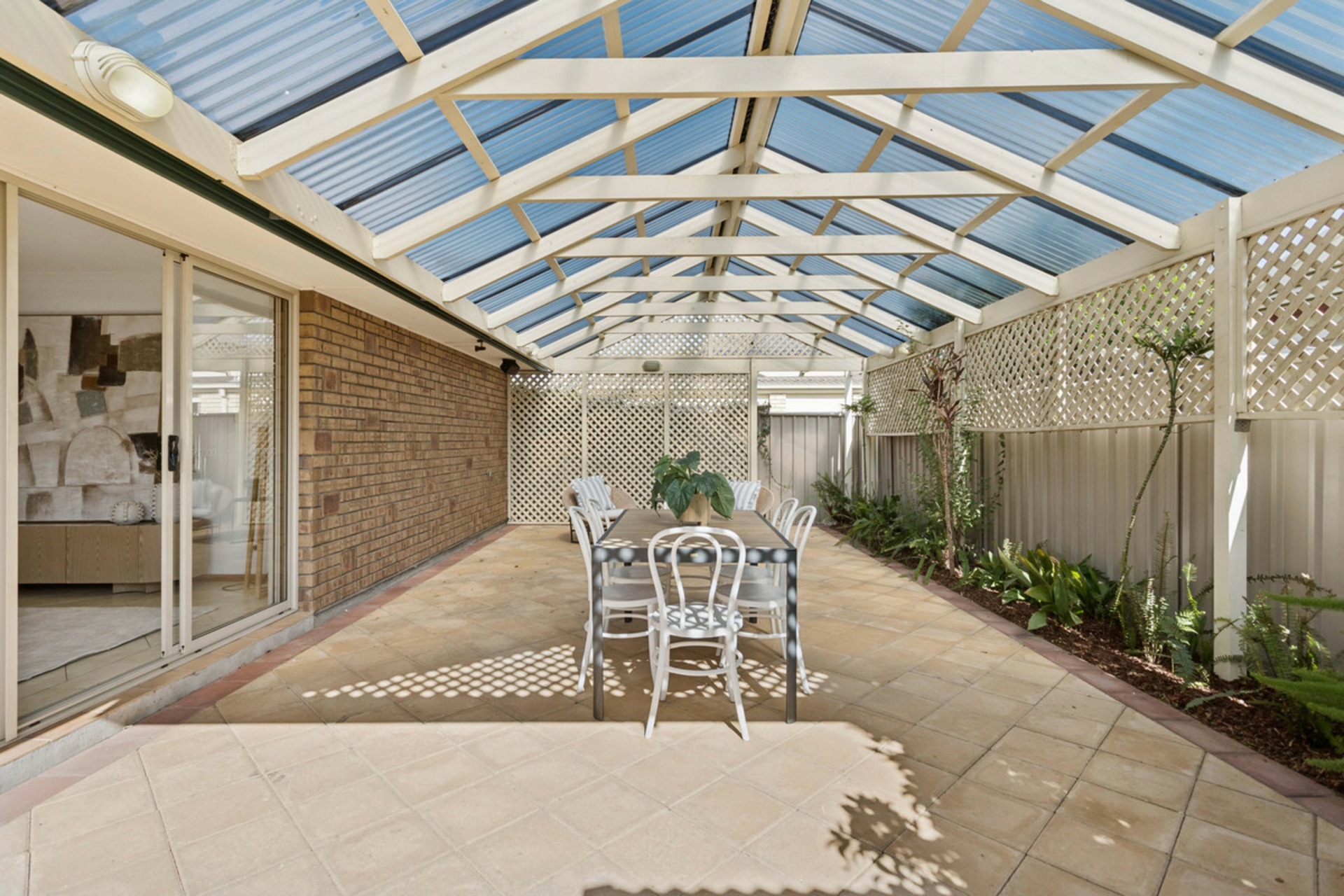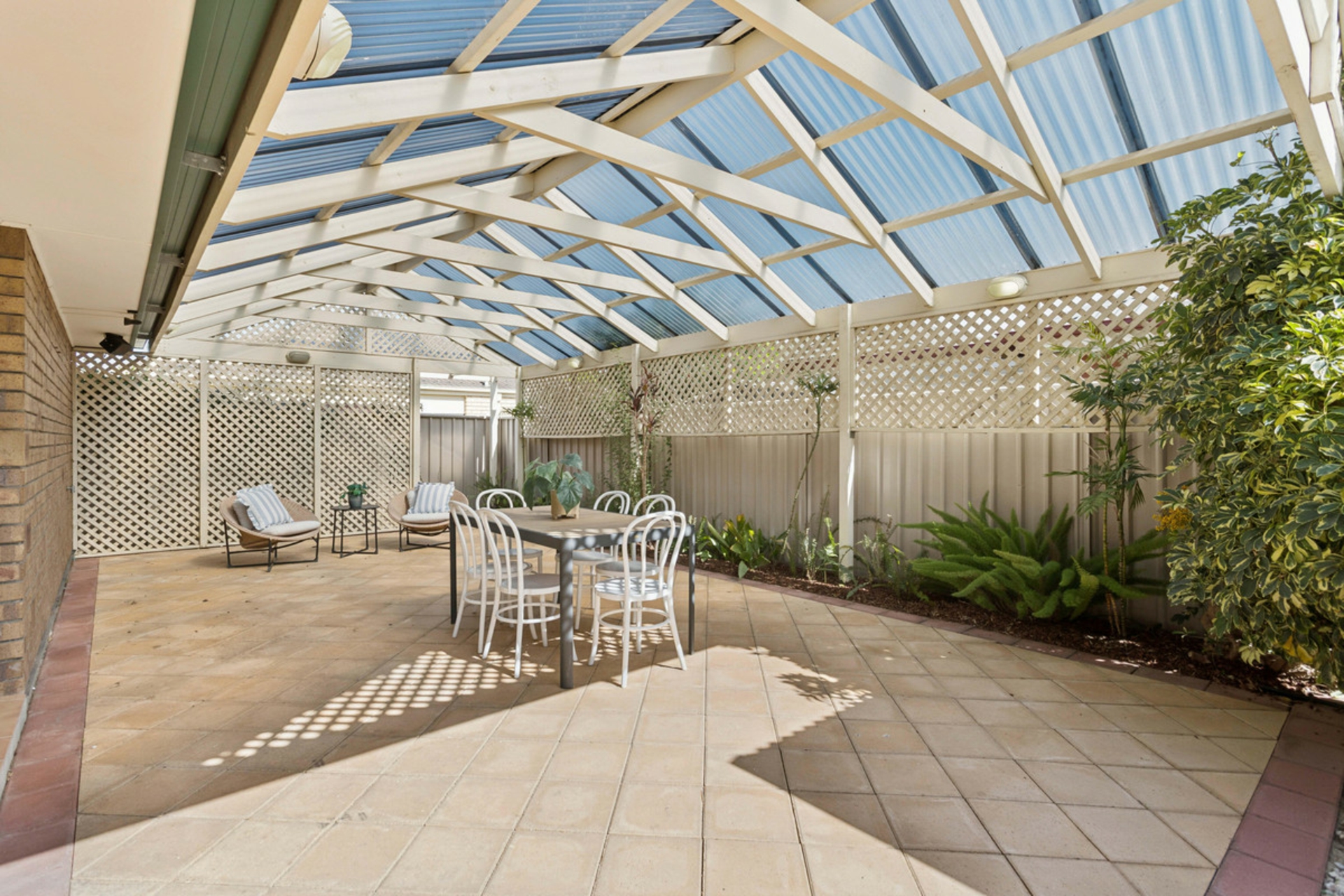 • Covered outdoor entertaining area with pitched pergola