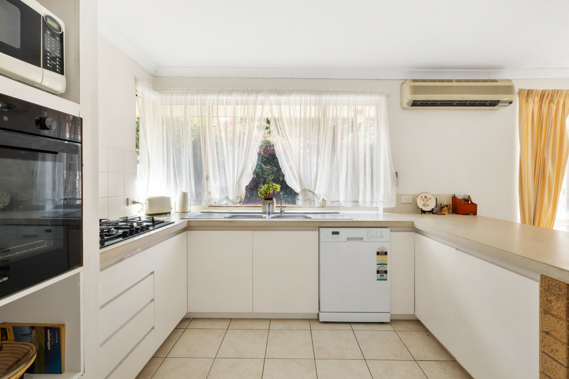 At the centre, the original kitchen remains neat and functional, yet its proportions hint at what could be-an easy opportunity to redesign into a contemporary focal point that connects seamlessly with the surrounding living areas.