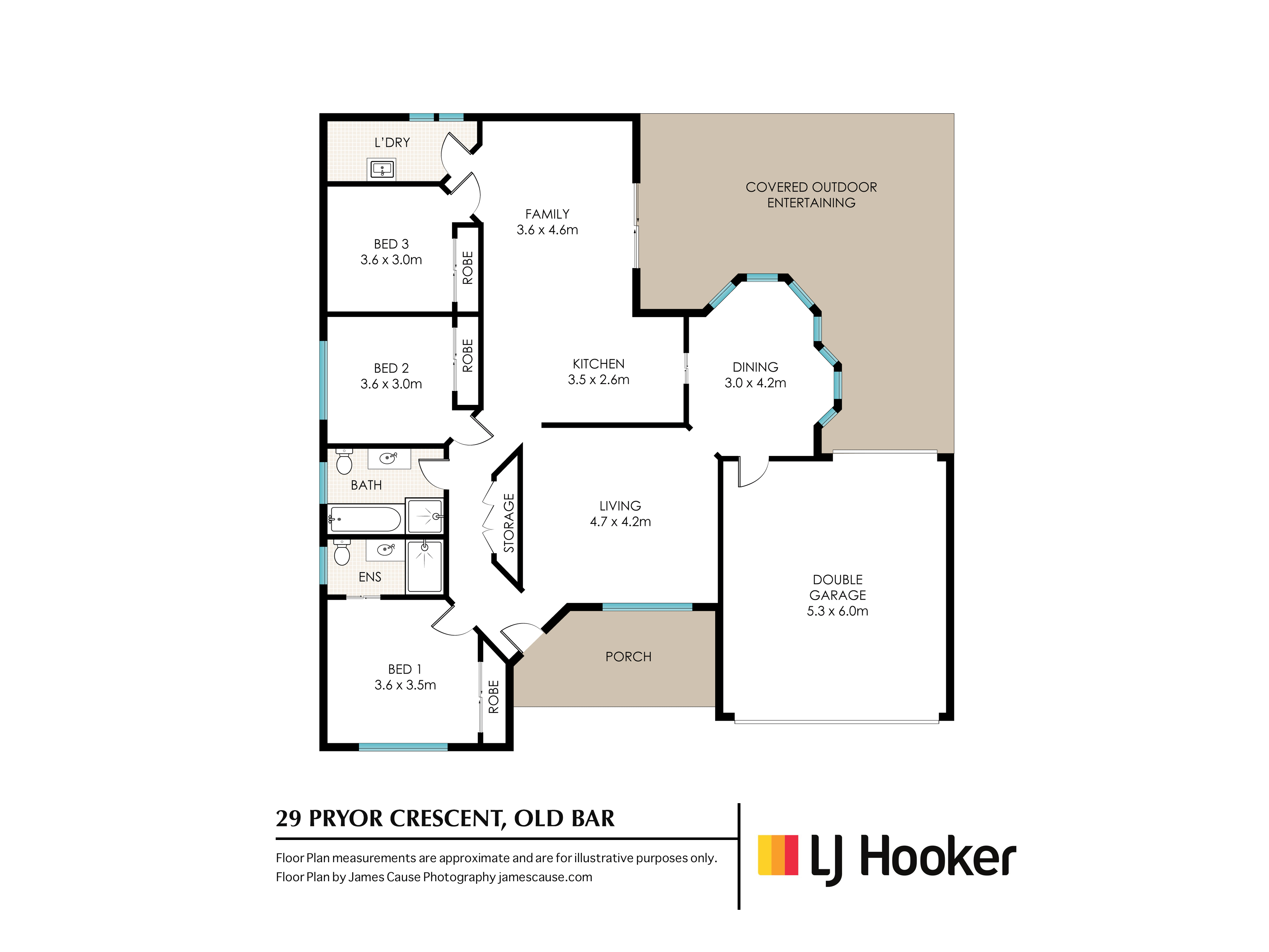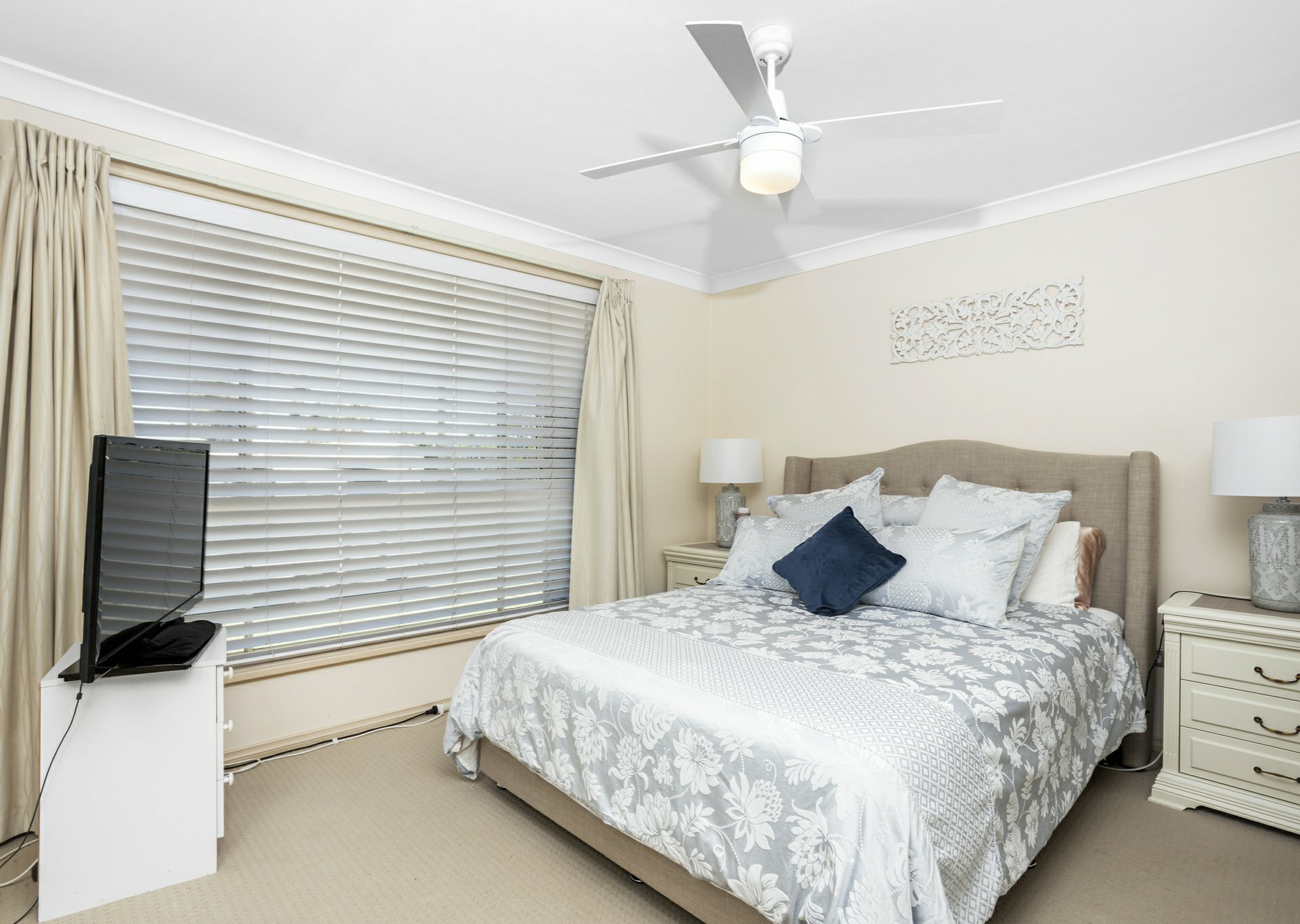 - Three bedrooms with built in wardrobes, ceiling fans and the main with ensuite