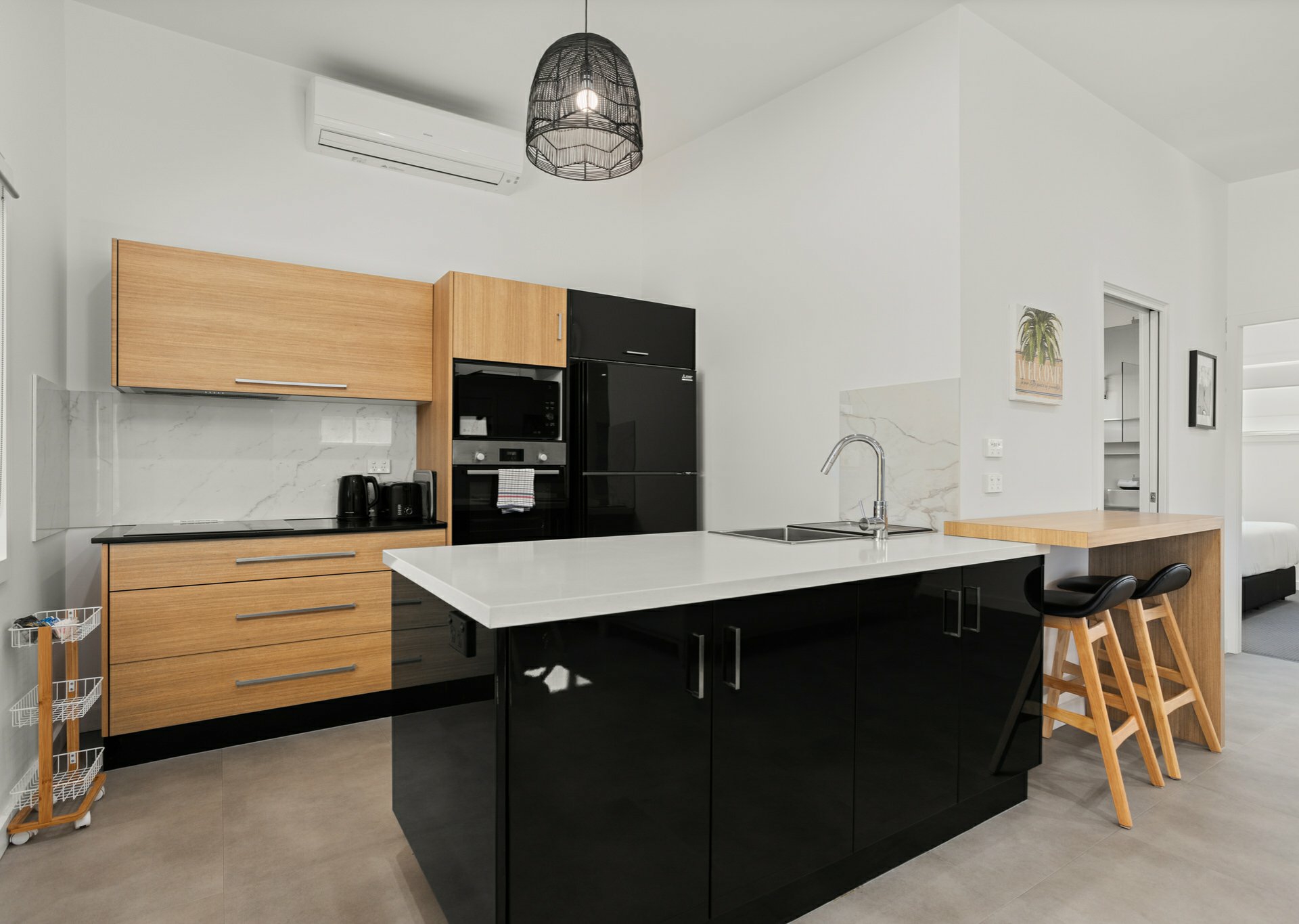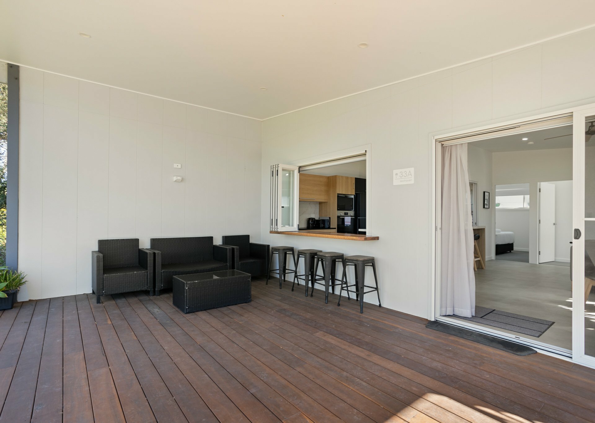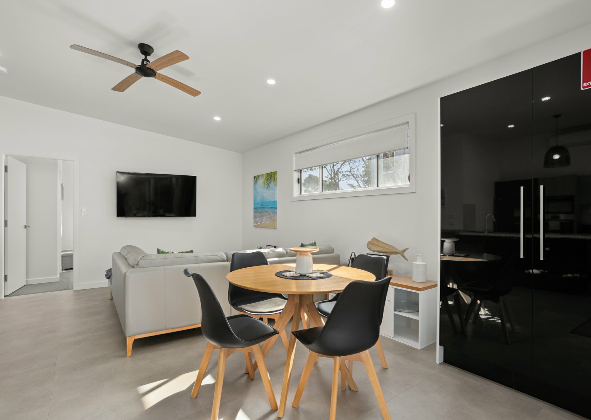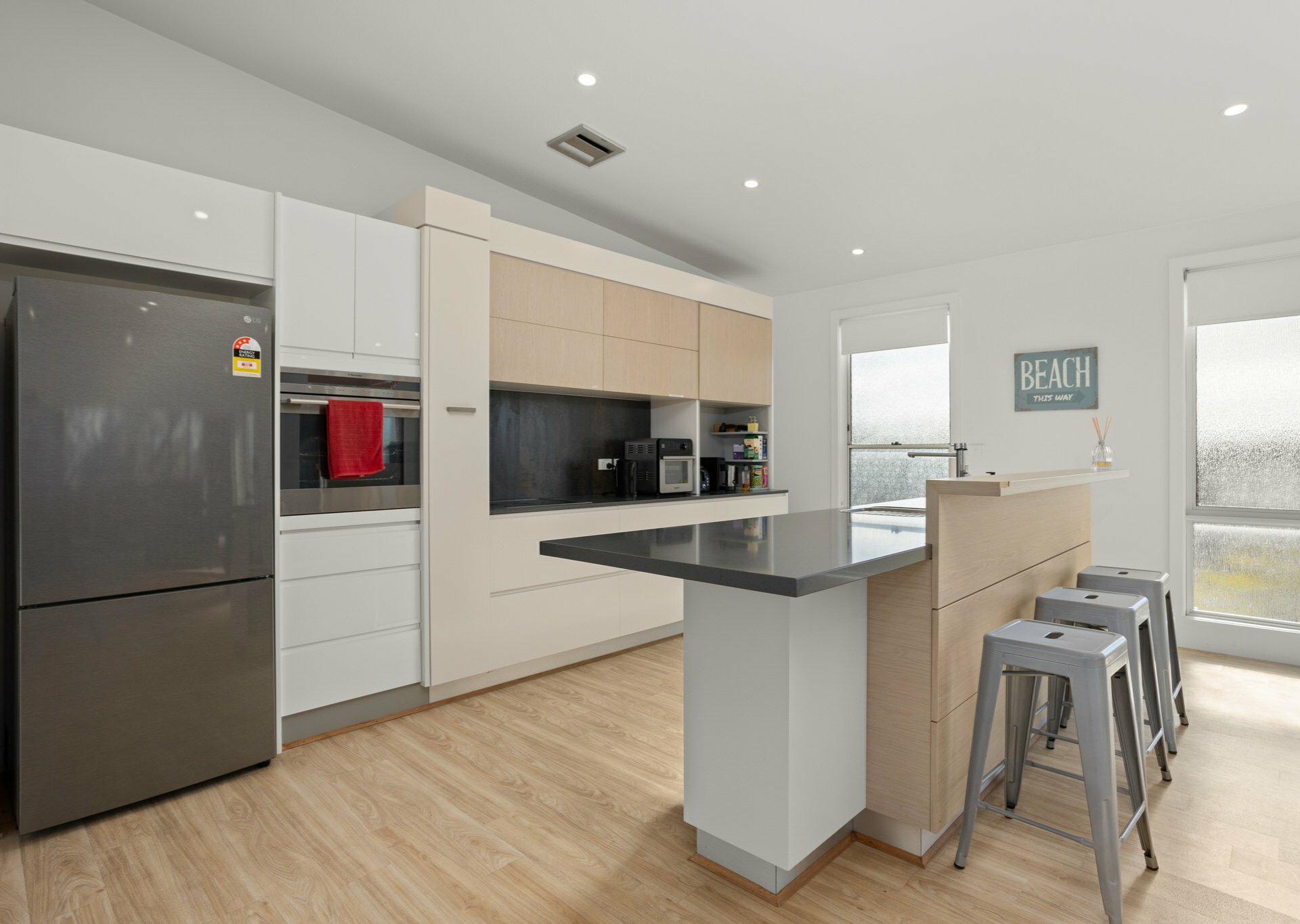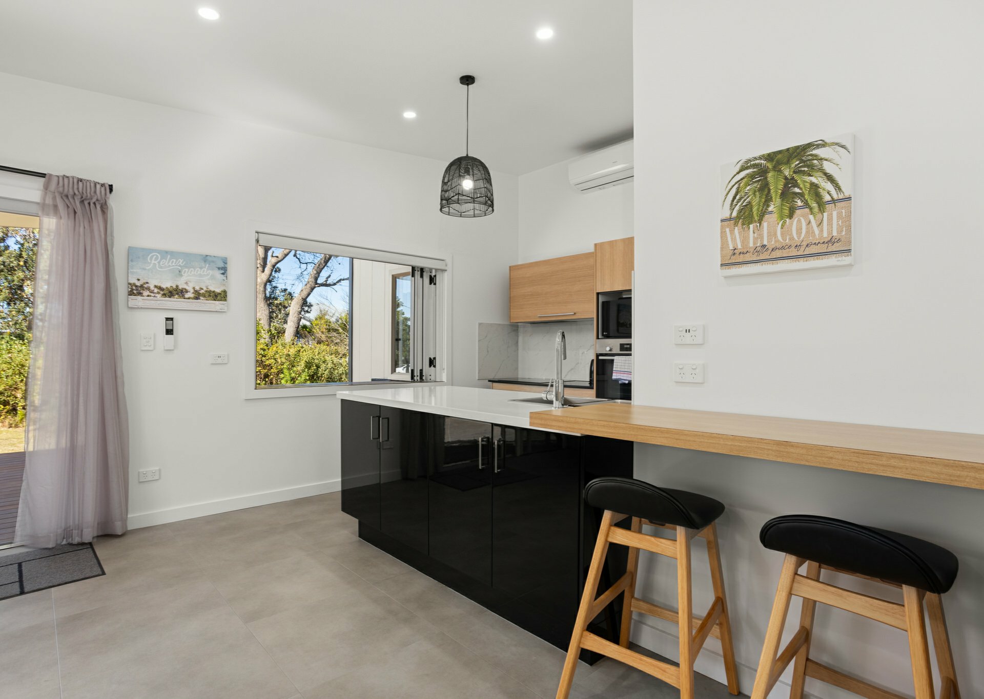 Step inside the main residence, and be captivated by the seamless blend of modern design and coastal charm. The open-plan layout creates a sense of spaciousness and allows for easy flow between the living, dining, and kitchen areas. Natural light streams through large windows, creating a warm and inviting ambiance throughout. The well-appointed kitchen boasts modern appliances, ample storage, and a breakfast bar, making it a culinary enthusiast's dream.