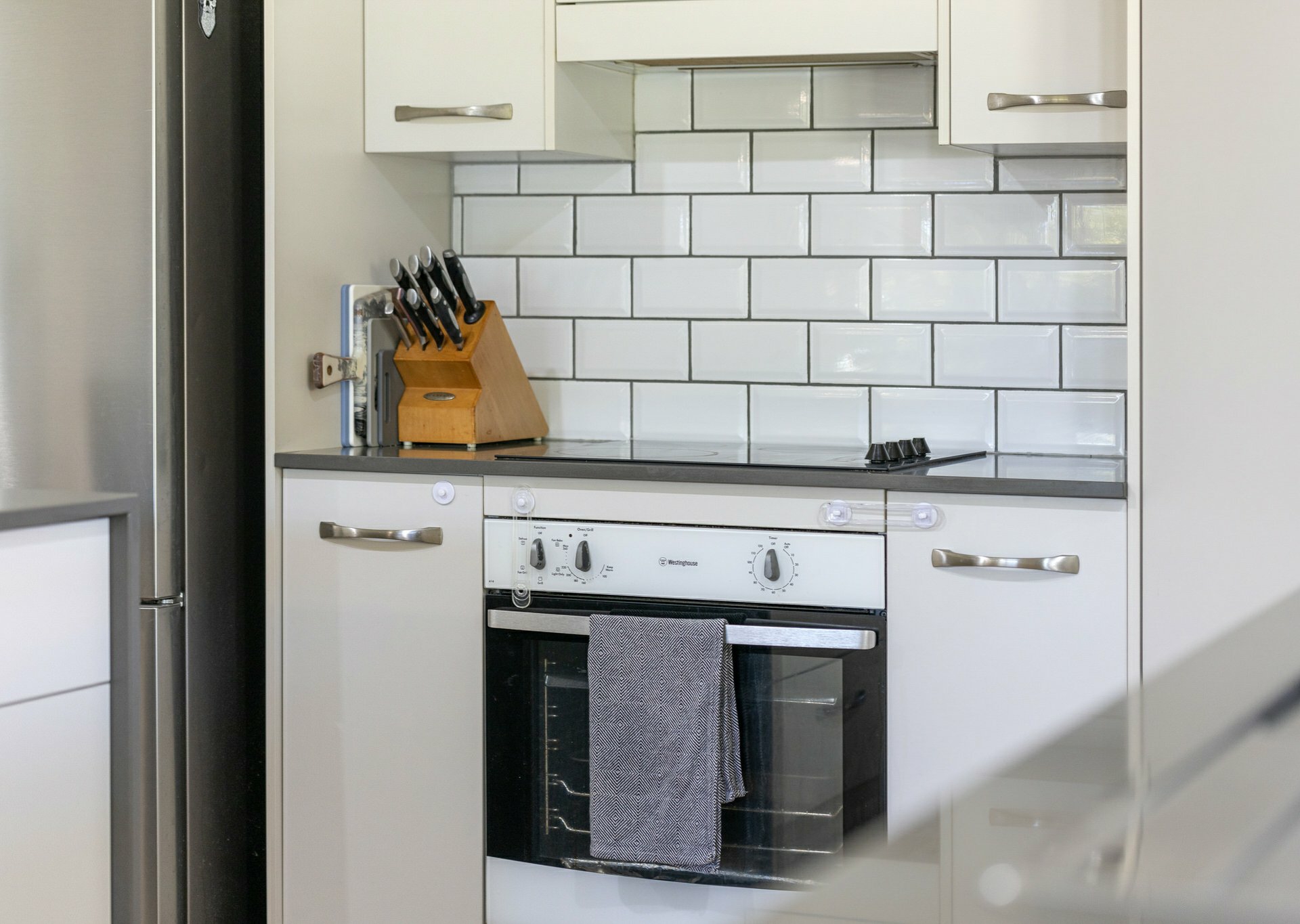 - Spacious, modern kitchen with electric appliances, dishwasher, stone benches and island bench
