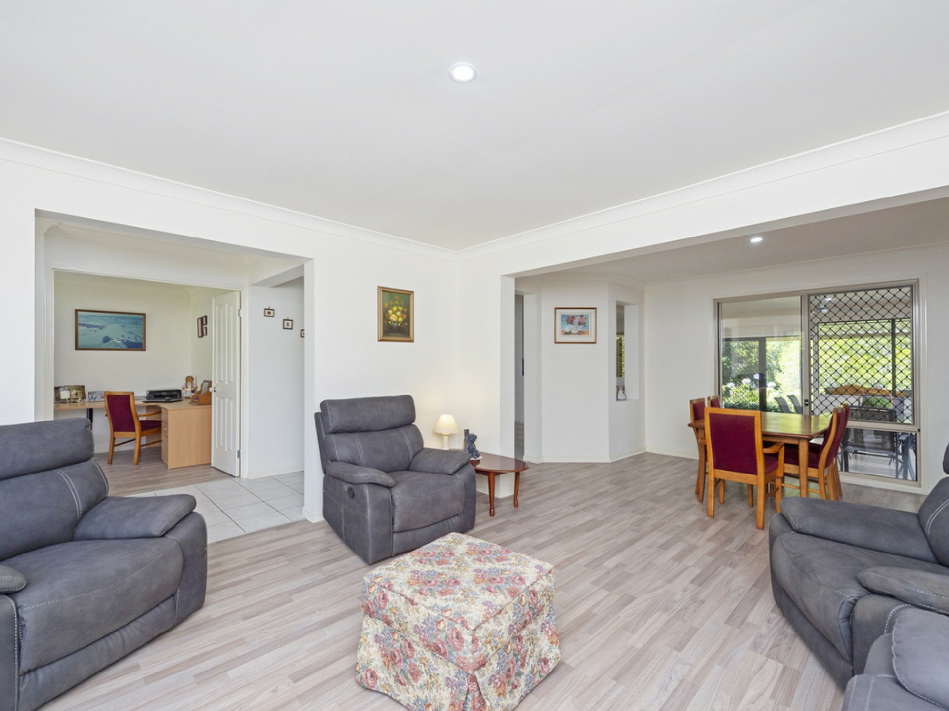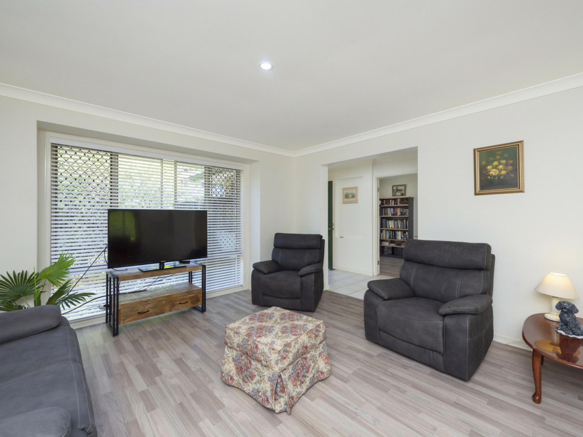 All three bedrooms are privately tucked away, each well-proportioned with built-in wardrobes. The master includes a walk-in robe and private ensuite whilst the main bathroom is set in family friendly layout with separate bath and shower. A separate study offers both work from home opportunity or a fourth bedroom if preferred. Additional features include a large laundry with built-in cabinetry, ceiling fans, double remote garage and side access with concrete pad capable of catering to caravans, boats etc.