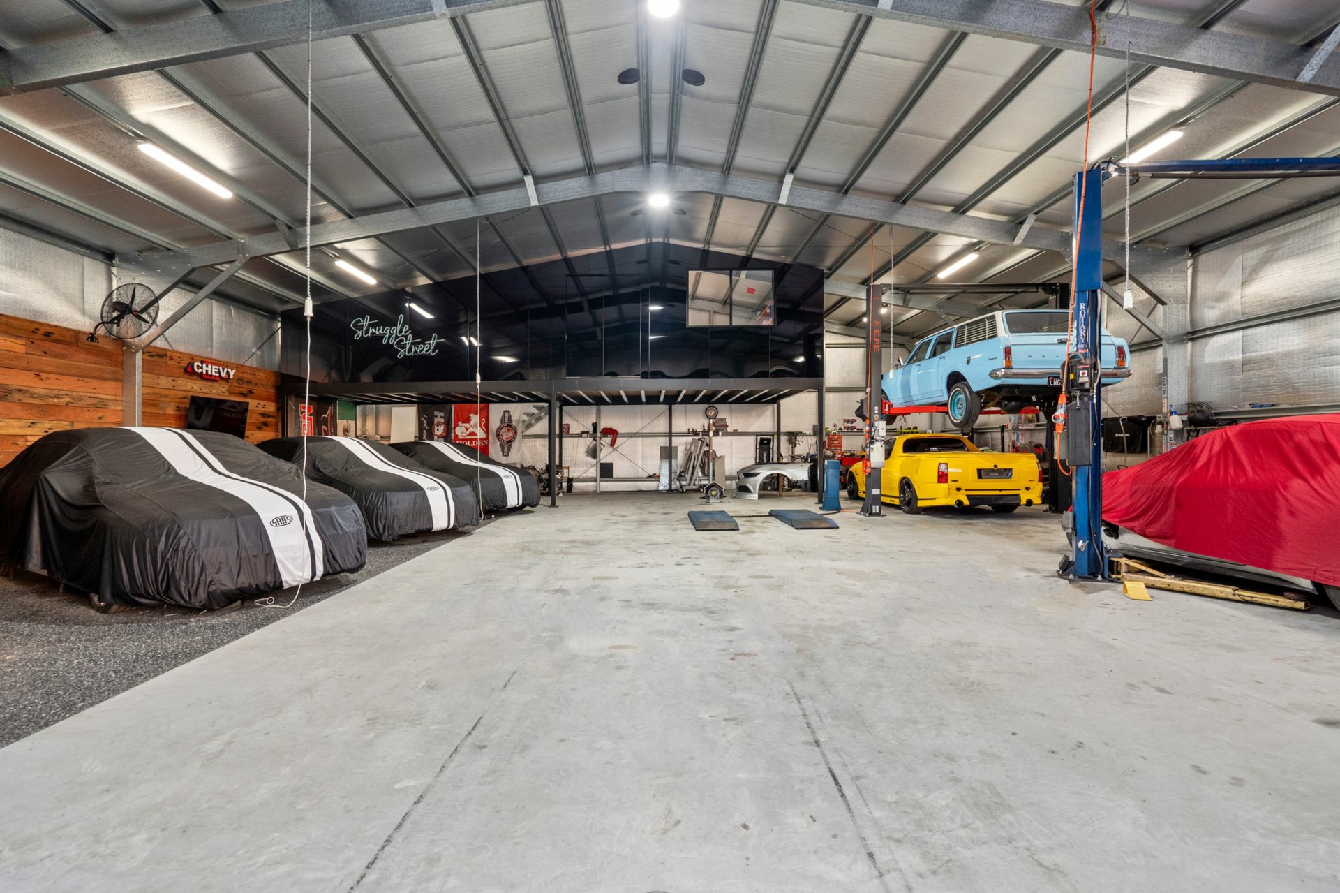 Maintaining excellent separation from the house, a second gated driveway leads down to a huge vehicle and storage facility at the rear of the property. Particularly appealing to those wanting to store boats, caravans or trade equipment, there is a massive triple bay shed with three phase power, car hoists, high access and mezzanine office; brilliantly suitable to a huge range of requirements. In addition there is a large concrete turning pad, additional rear shed and open-air parking for added vehicles.