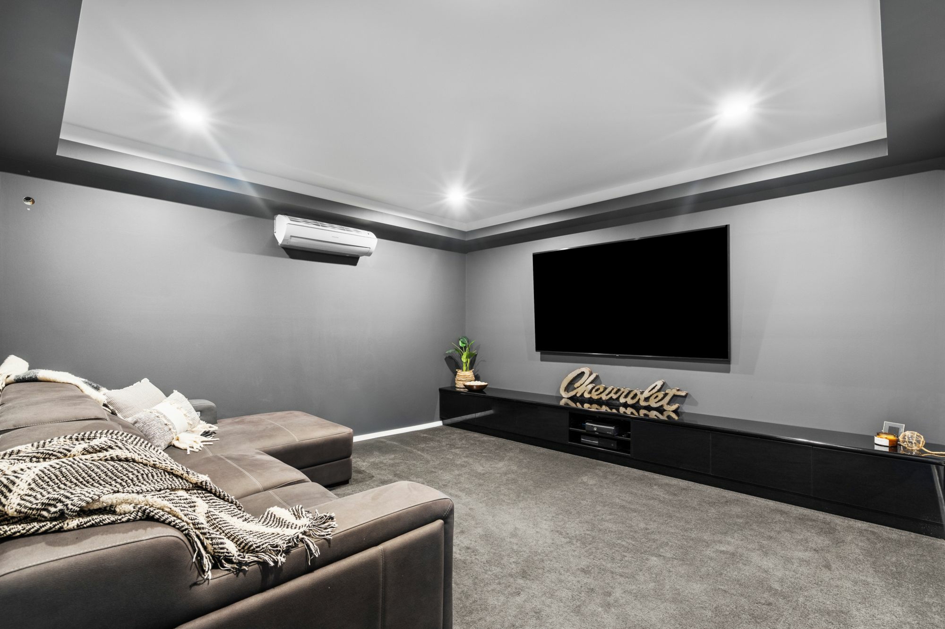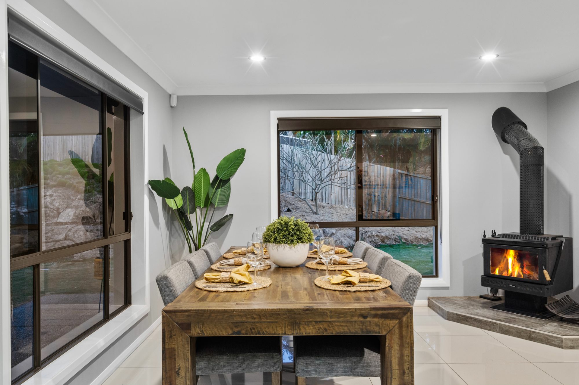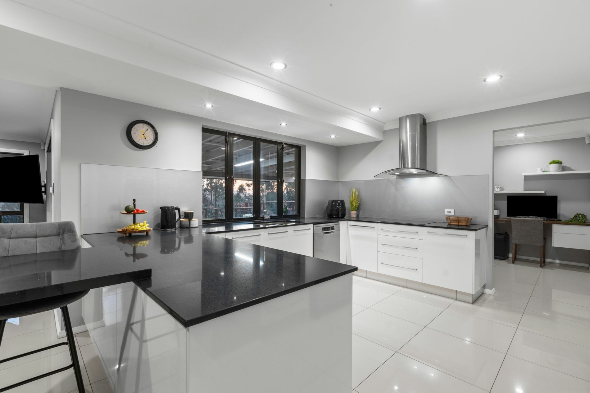 Set on a huge 5736m2 block, lush hedging and a fenced frontage cements an appealing street presence whilst inside, a sleek contemporary fit-out extends a sophisticated welcome. Gleaming tiles and a wood burning fireplace feature within a light-filled living and dining whilst the plush separate media room is ready for the perfect movie night! Positioned centrally to embrace connection, the modern kitchen is laid out on an expansive footprint, with excellent storage wrapping around the zone. Stainless appliances and sleek black stone are perfect for catering whilst the integrated dining bar is ideal for casual and quick meals.