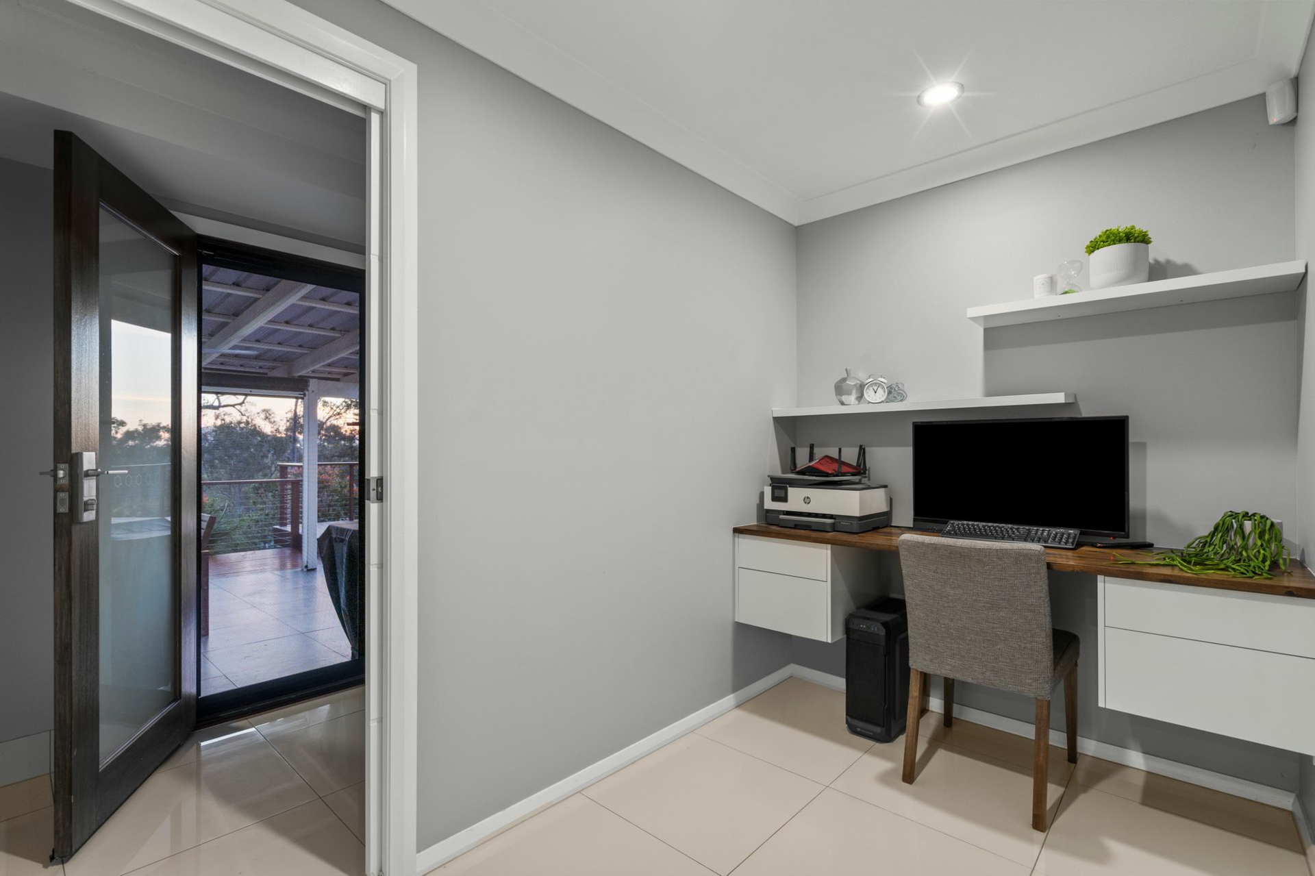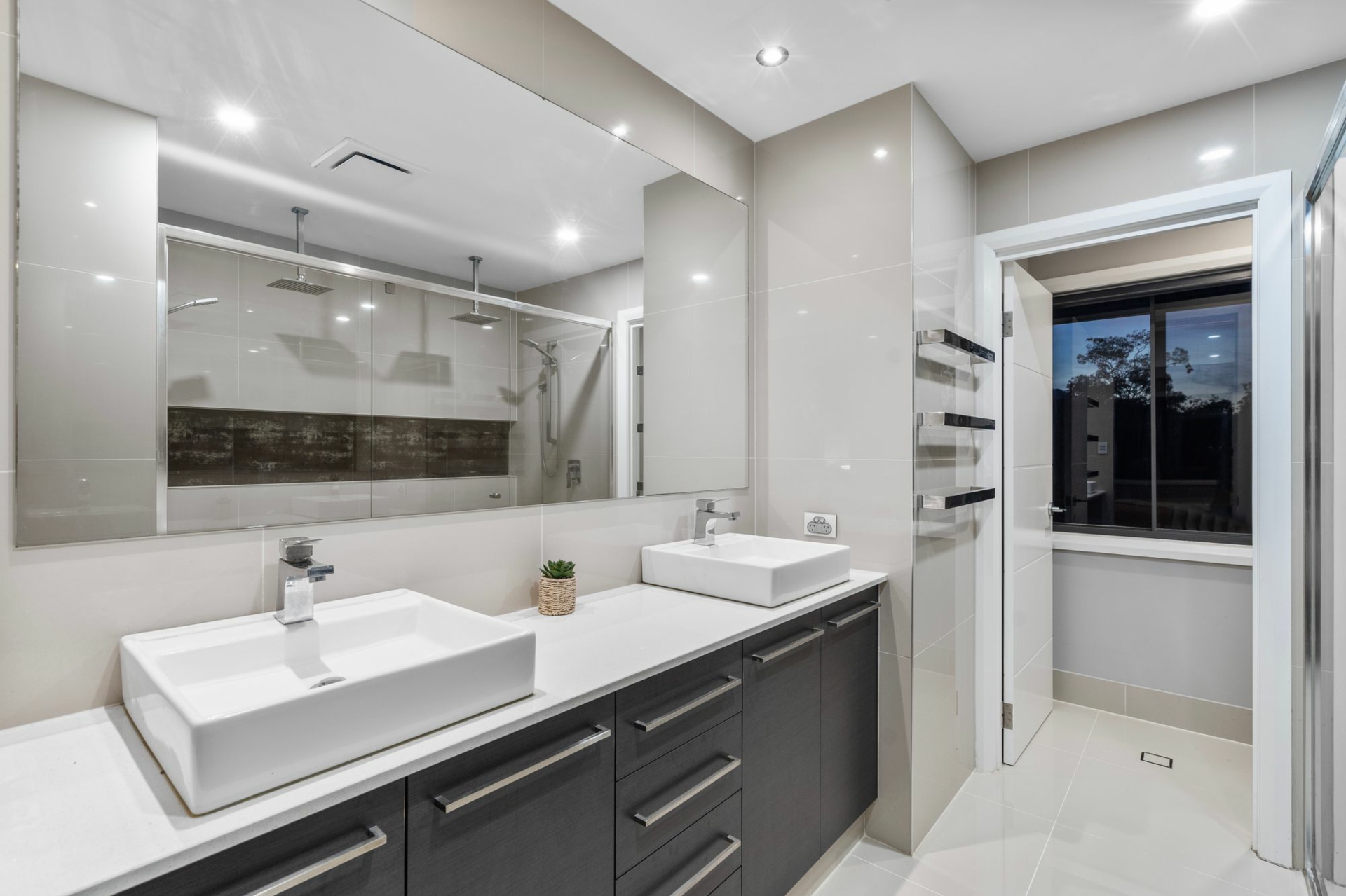 A separate study with built-in desk is ideally positioned on the lower level whilst upstairs, four plush bedrooms each include built-in storage. Along with a walk-in robe, the master also shows off a stylish ensuite with floor to ceiling tiling and dual vanity whilst the family bathroom is also immaculately appointed and includes a freestanding bath. Additional features include a downstairs powder room, separate laundry, solar electricity, double garage and double carport.