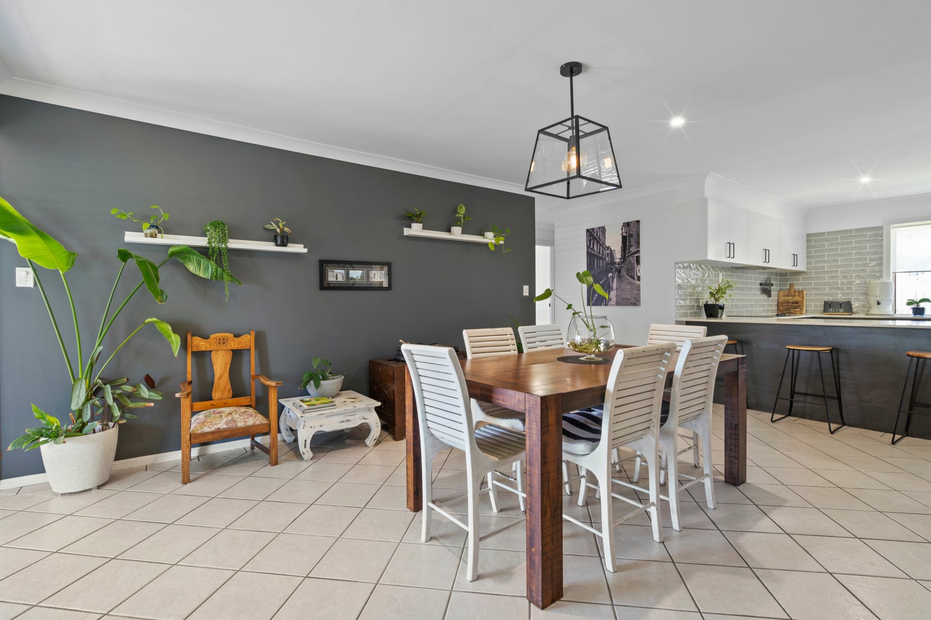 Manicured landscaping flows through to a welcoming front porch with the covered verandah wrapping around the home, providing a warming homeliness as well as a wonderful spot to enjoy alfresco dining. Inside, extensive glass wraps around an open-plan living and dining, with the superb natural light flowing through into a stylishly upgraded kitchen. Beautifully appointed with sleek joinery, subway tiling, quality appliances and expansive stone with breakfast bar, it is the perfect blend of finesse and function.