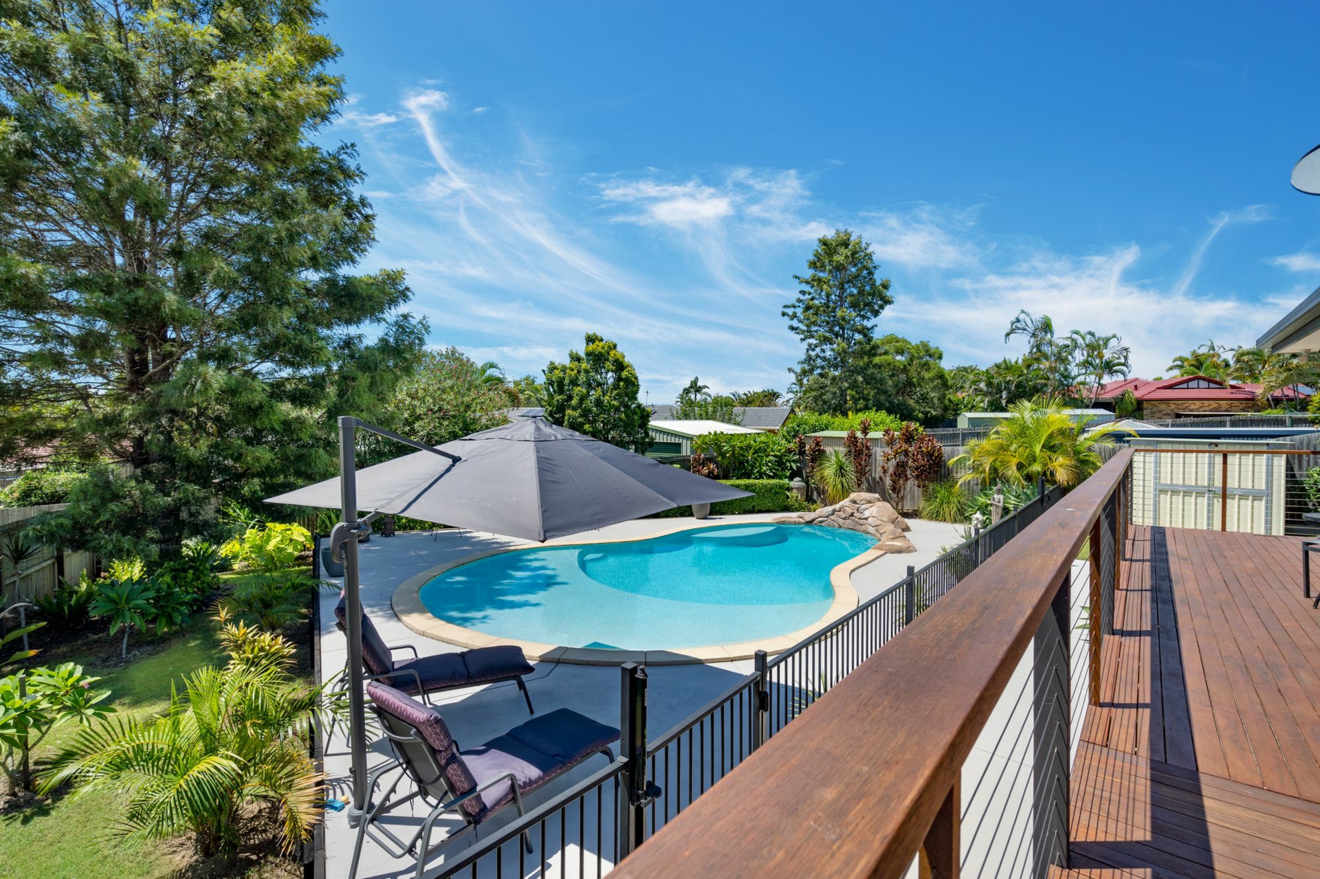 Options to further extend your alfresco living and dining are on the large rear deck, with shade sails and open-air zones providing great options to unwind and entertain. There is a fabulous outlook over the lush backyard, where beautiful mature greenery cements the wonderful feeling of retreat and the children's playground will delight the kids. Oozing resort vibes and taking centre stage is the huge in-ground swimming pool; framed by large poolside lounging space and including a huge concrete splash shelf for younger children!