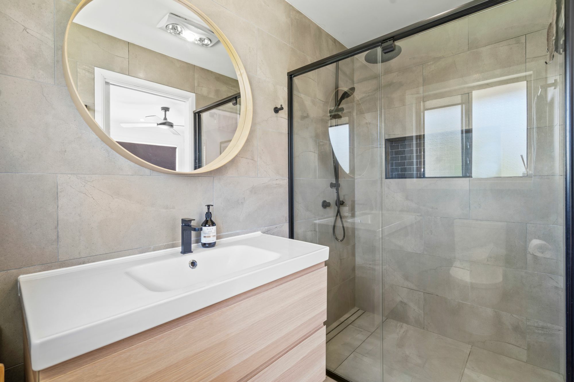 -Master including walk-in robe and new ensuite with floor to ceiling tiling and black tap ware