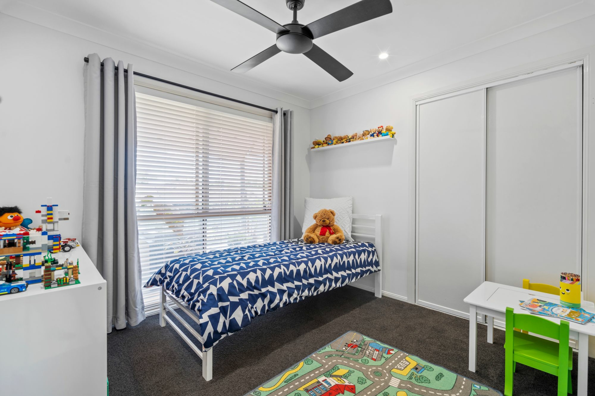-Four built-in bedrooms with plush carpet and ceiling fans