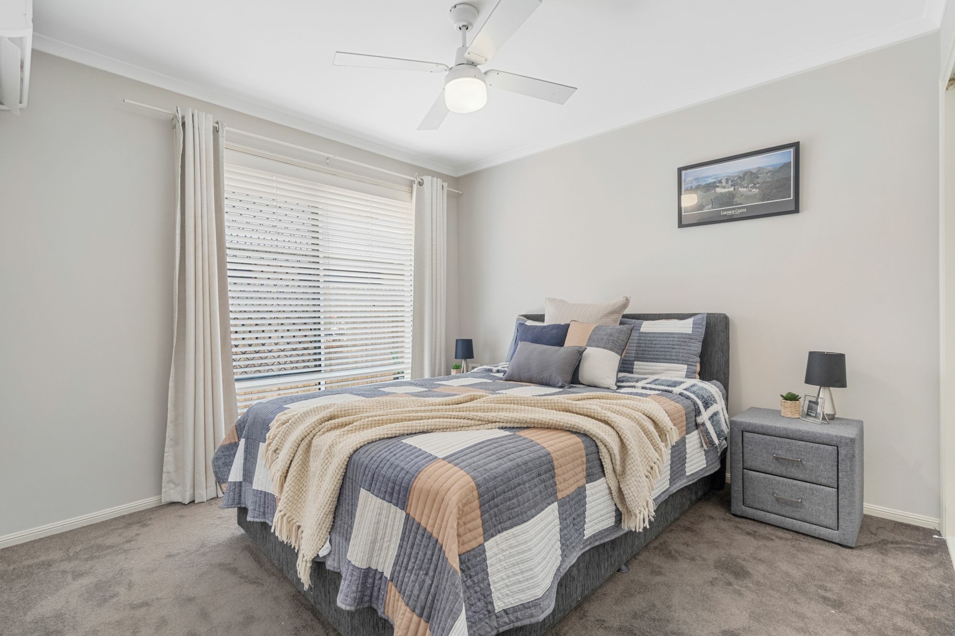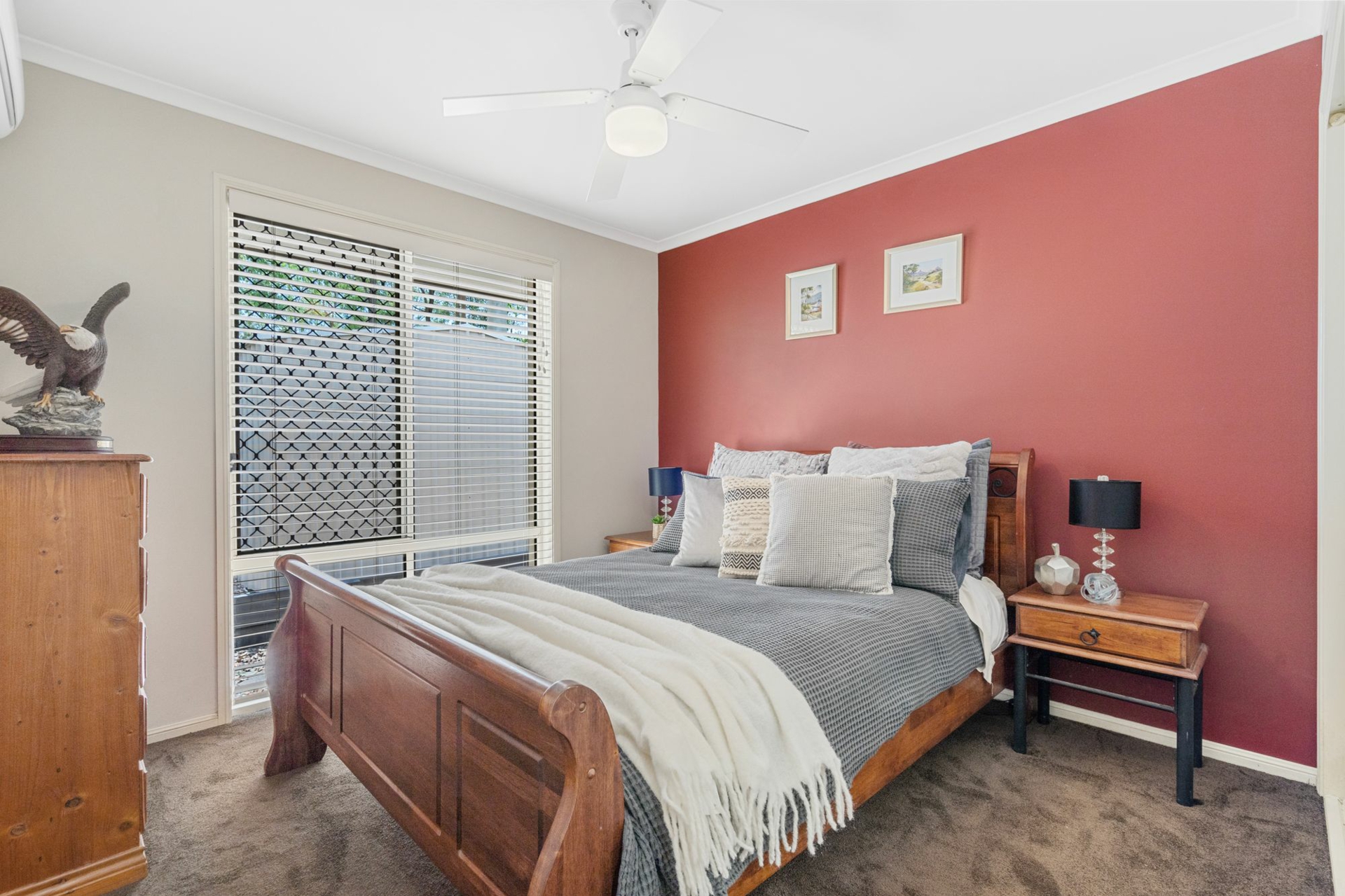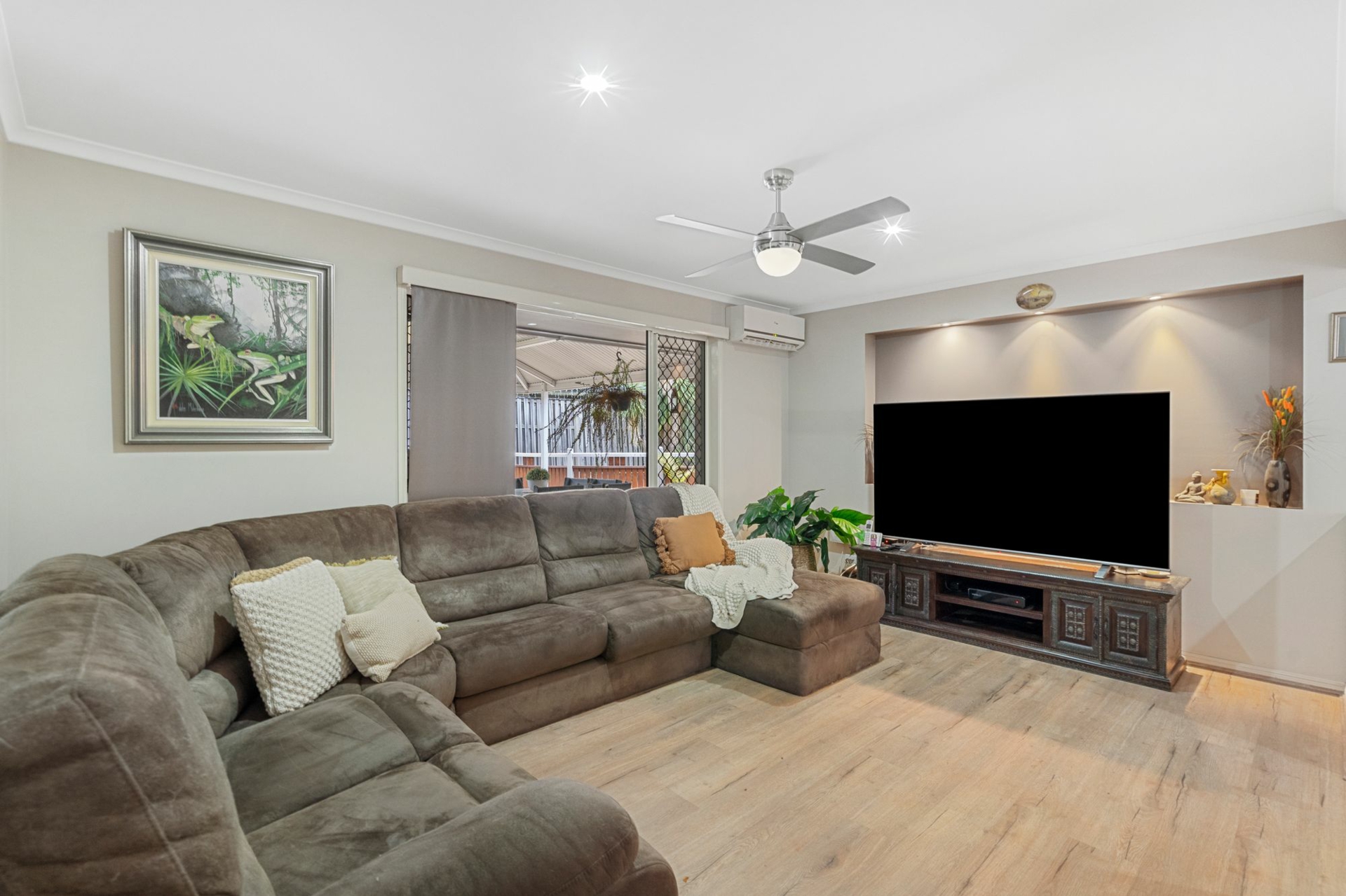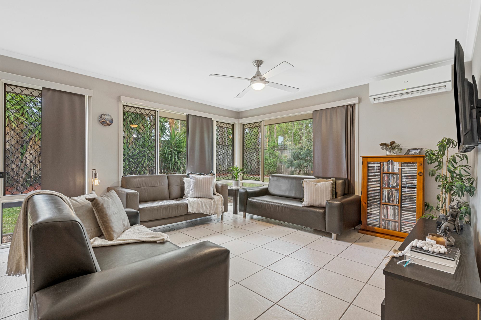 Accommodation includes four spacious bedrooms with built-in robes, plus a separate study or home office. Comfort is assured year-round with 7 split-system air conditioning units, ceiling fans throughout and security screens for peace of mind.