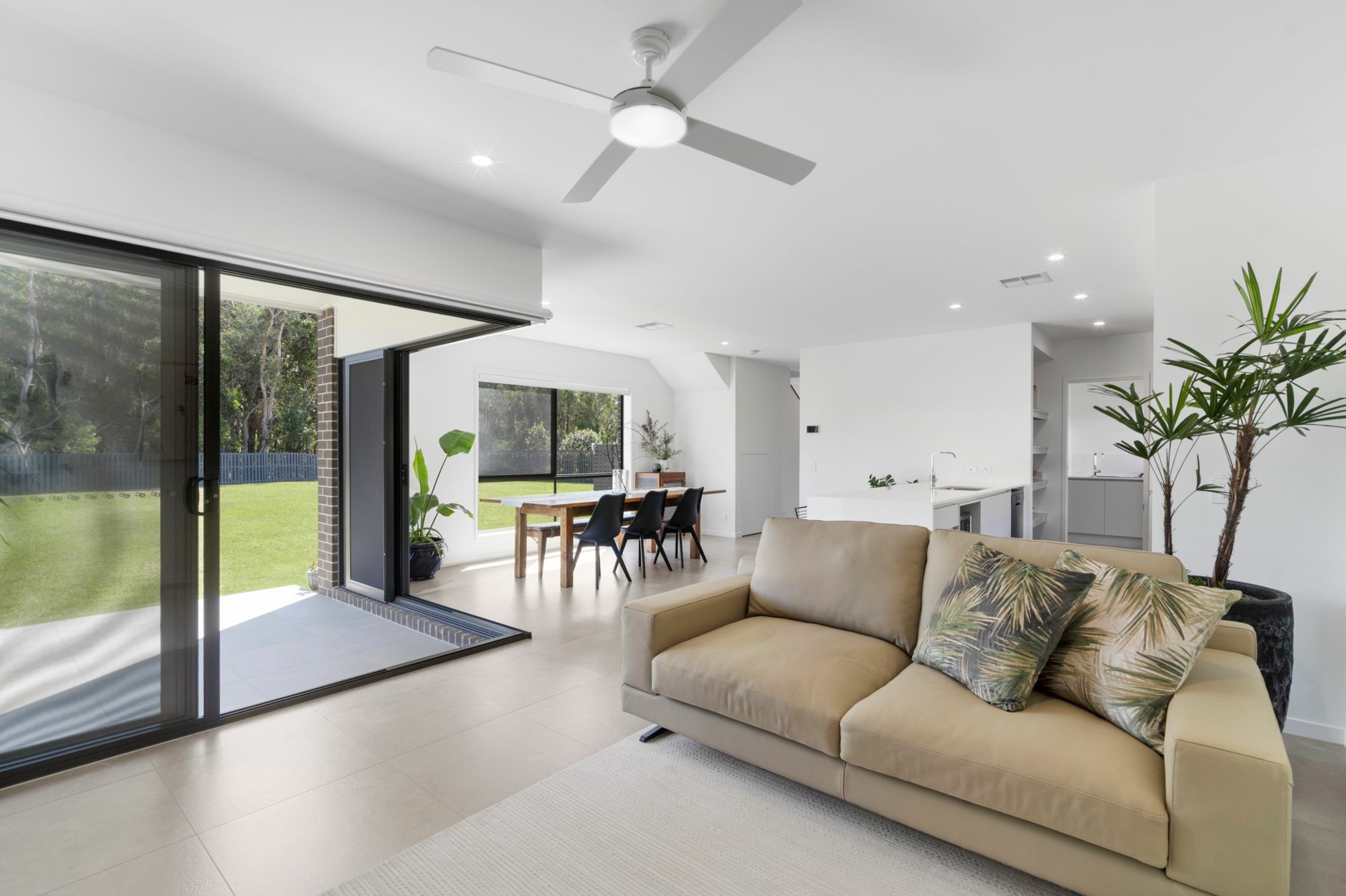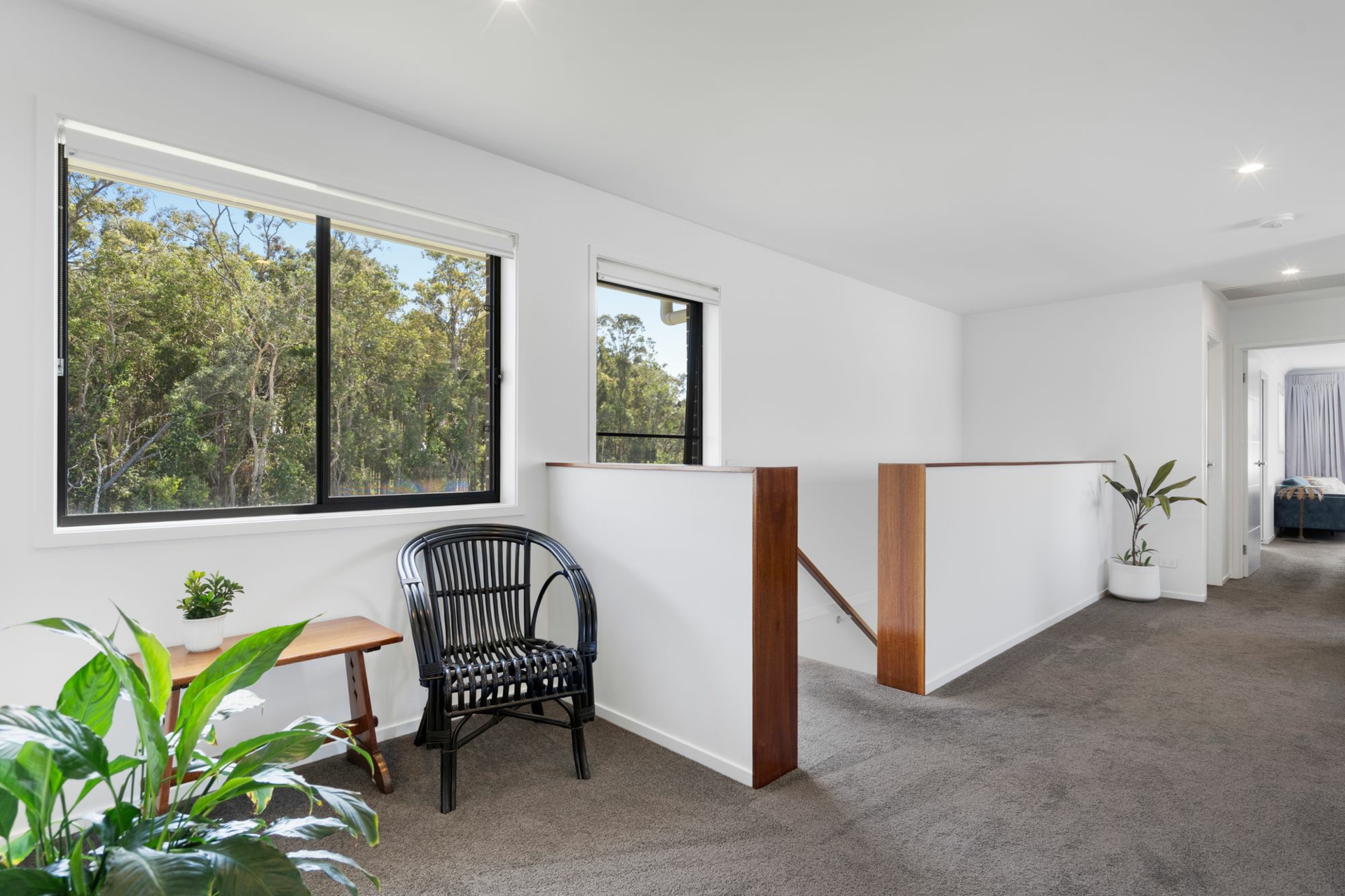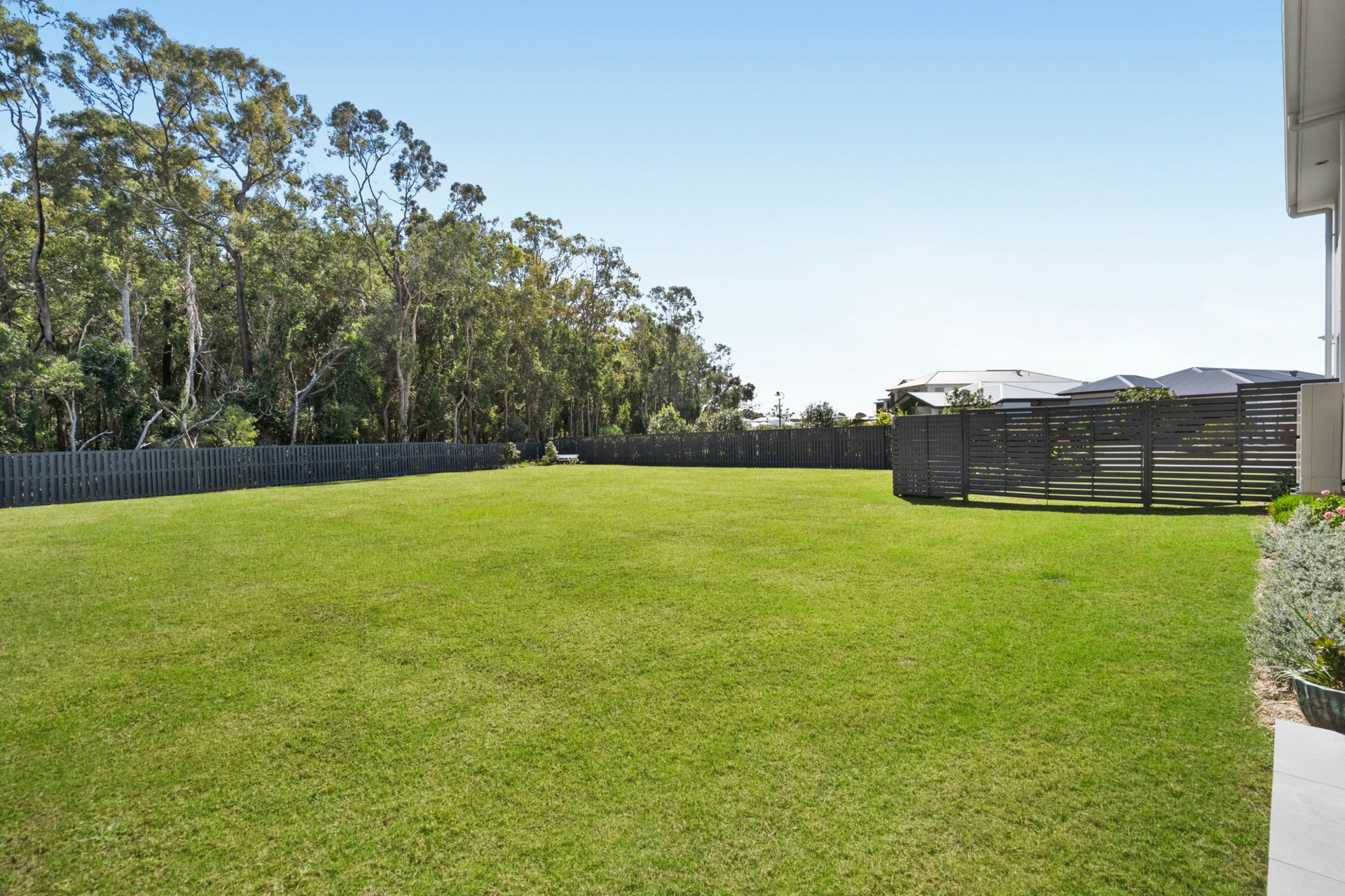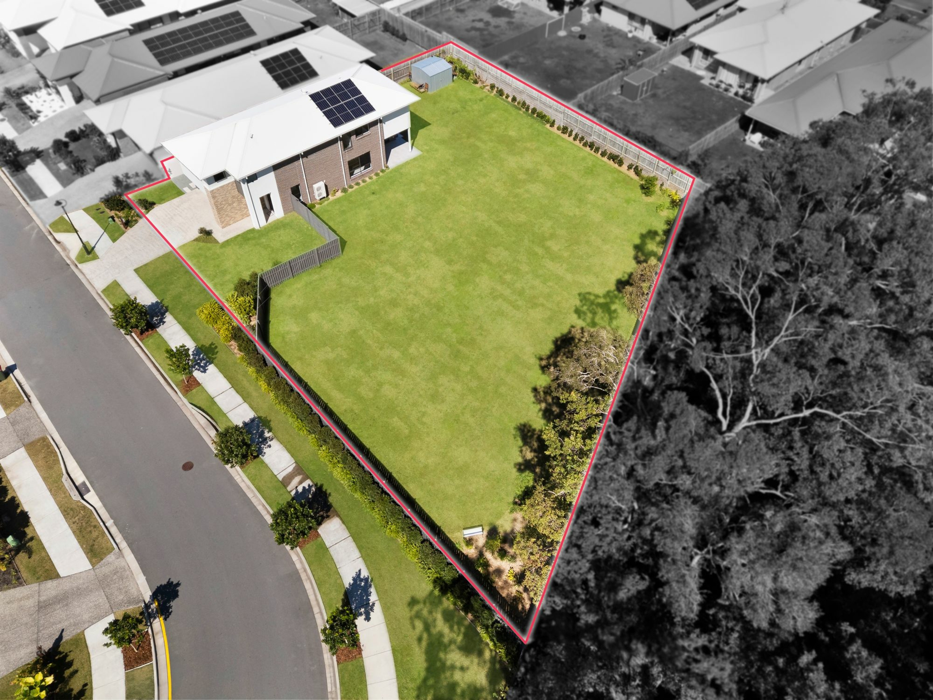 Sliding doors open to a generous covered patio, seamlessly connecting indoor and outdoor living while overlooking the massive fenced yard. Neighbouring a peaceful bush reserve, the property offers a sense of acreage-style tranquility rarely found in a modern estate.