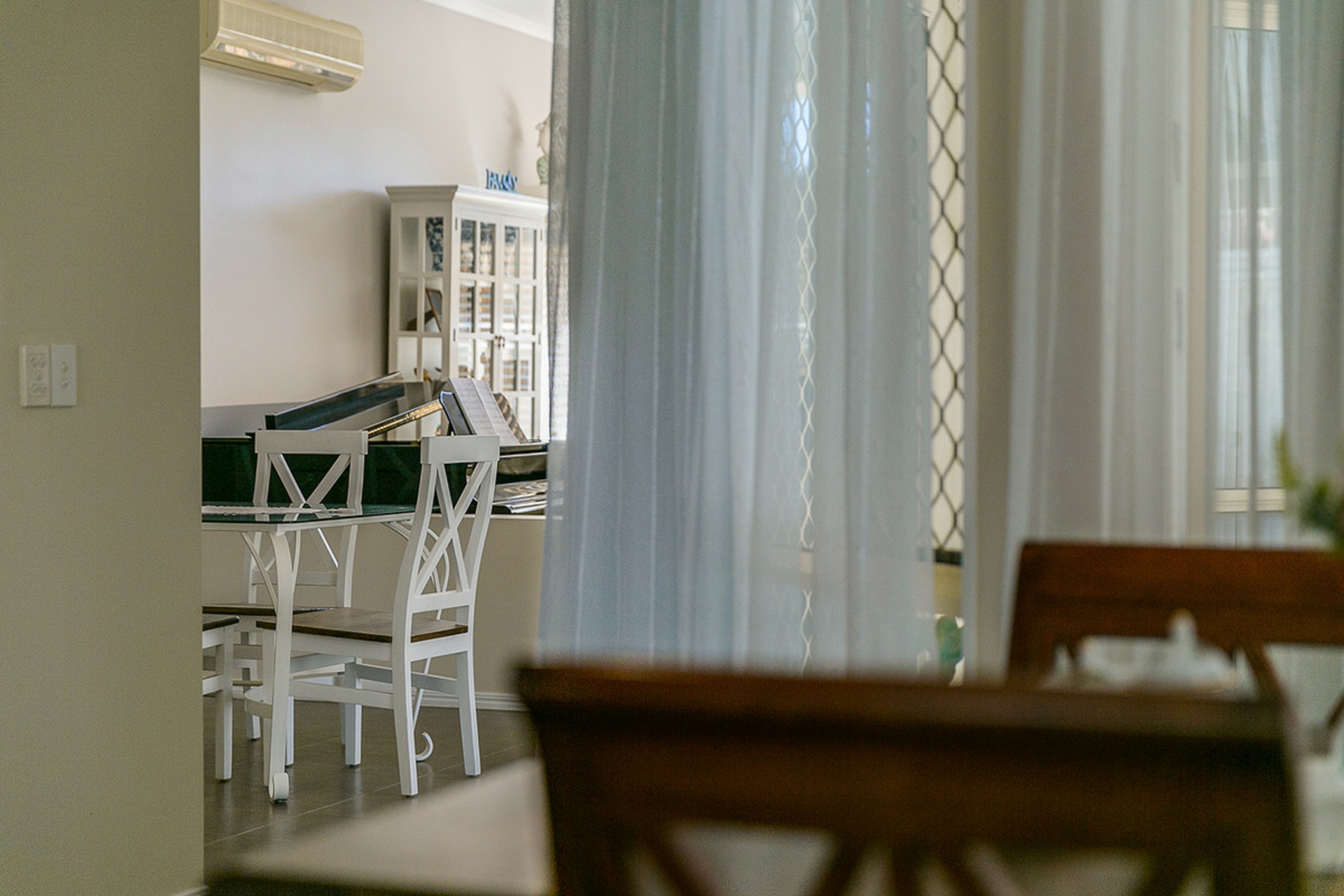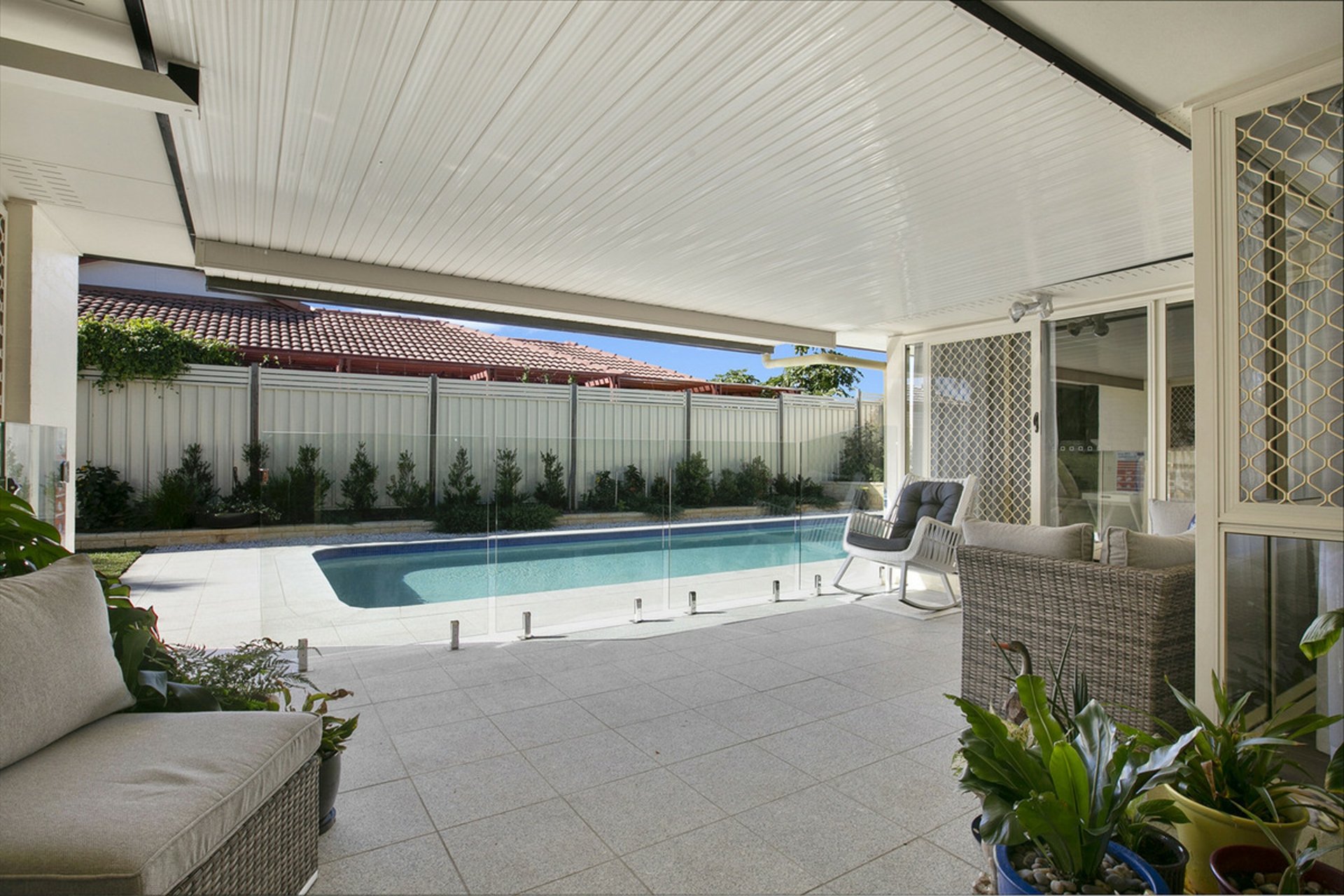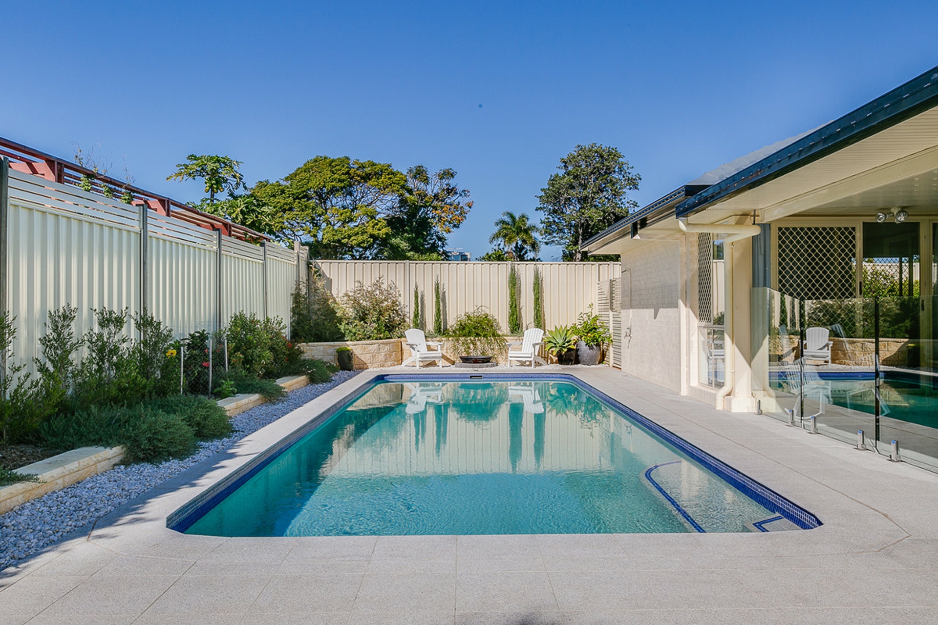 The family bathroom is centrally positioned with separate toilet and skylight. The equally impressive kitchen merges with the dining and living before seamlessly expanding onto the secluded covered patio for year-round entertaining. The pool surroundings and backyard are beautifully maintained with a variety of native Australian plants, with a vegetable and herb garden.
