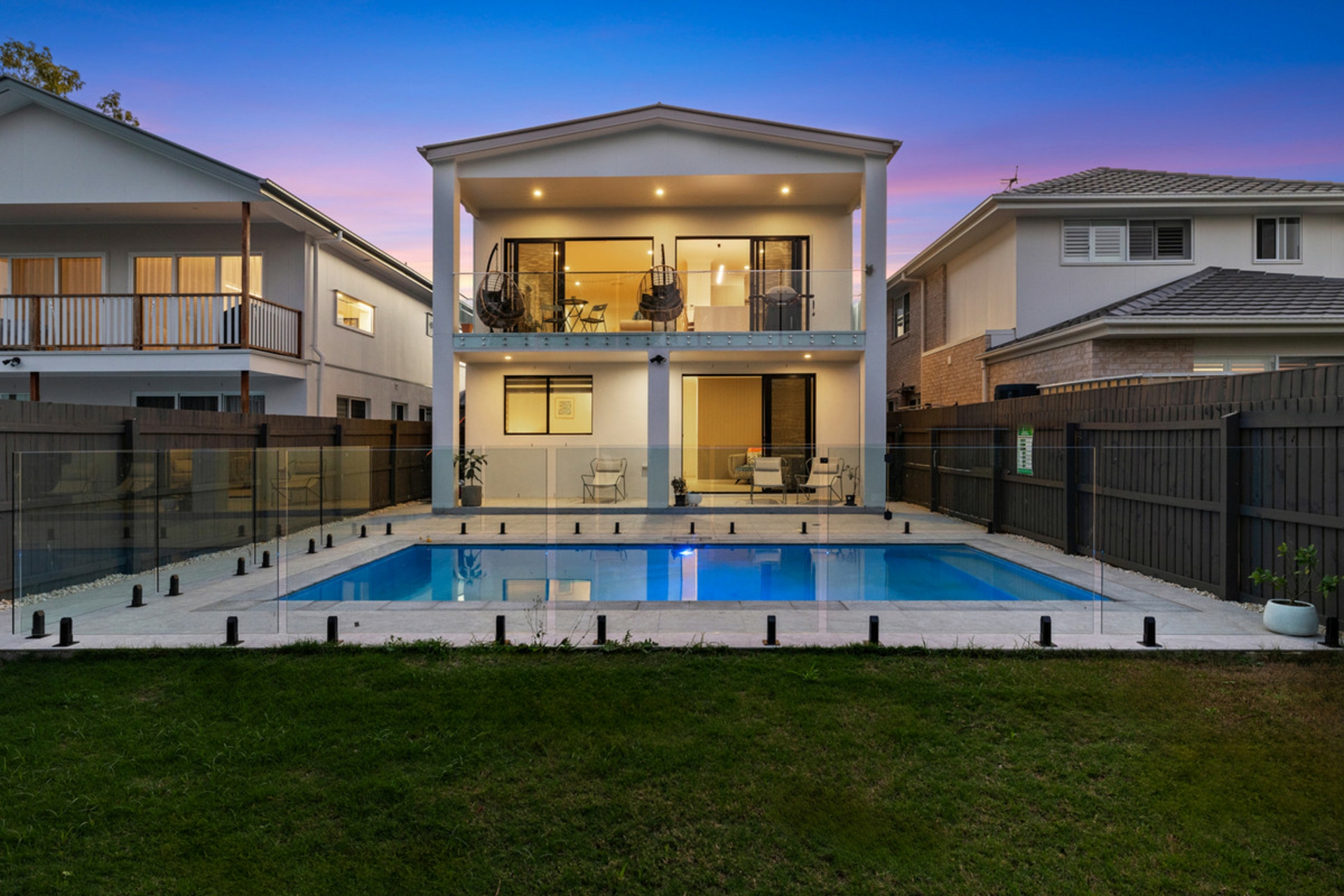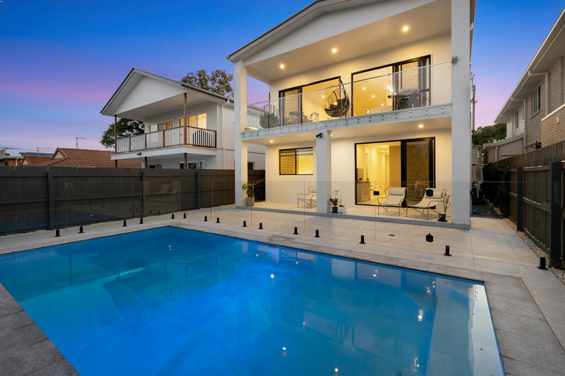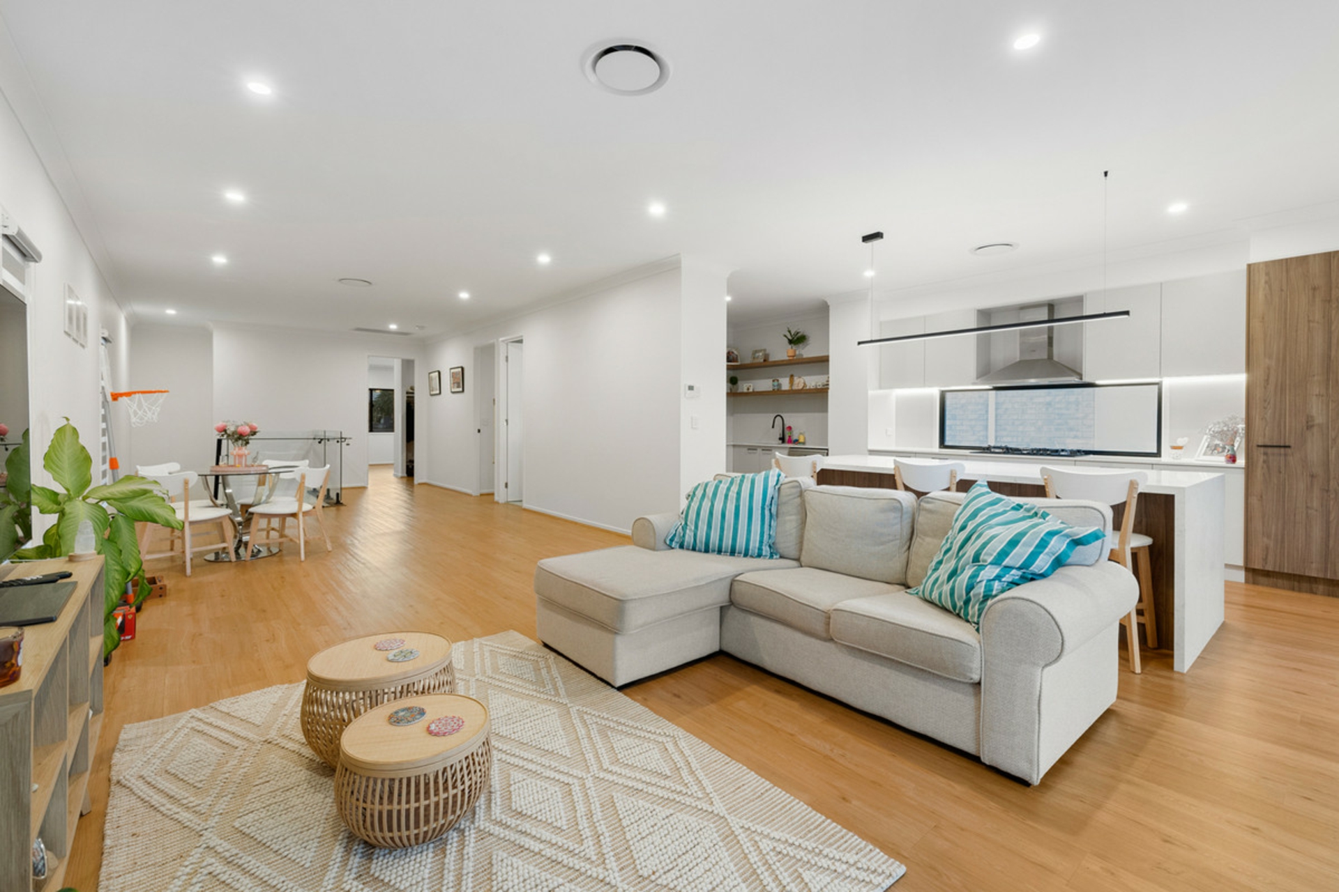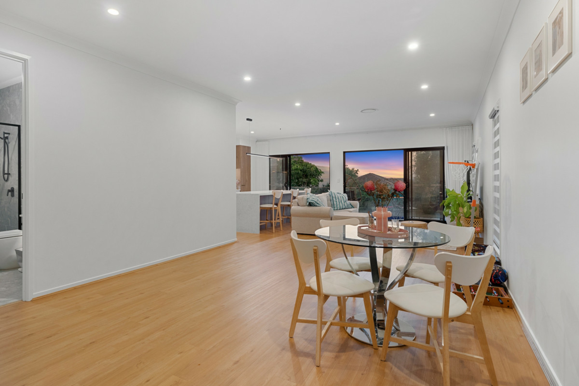 - Elegant Living Spaces: Large open-plan living and dining area, an additional family room downstairs, and high ceilings across both levels, with seamless integration with outdoor spaces.