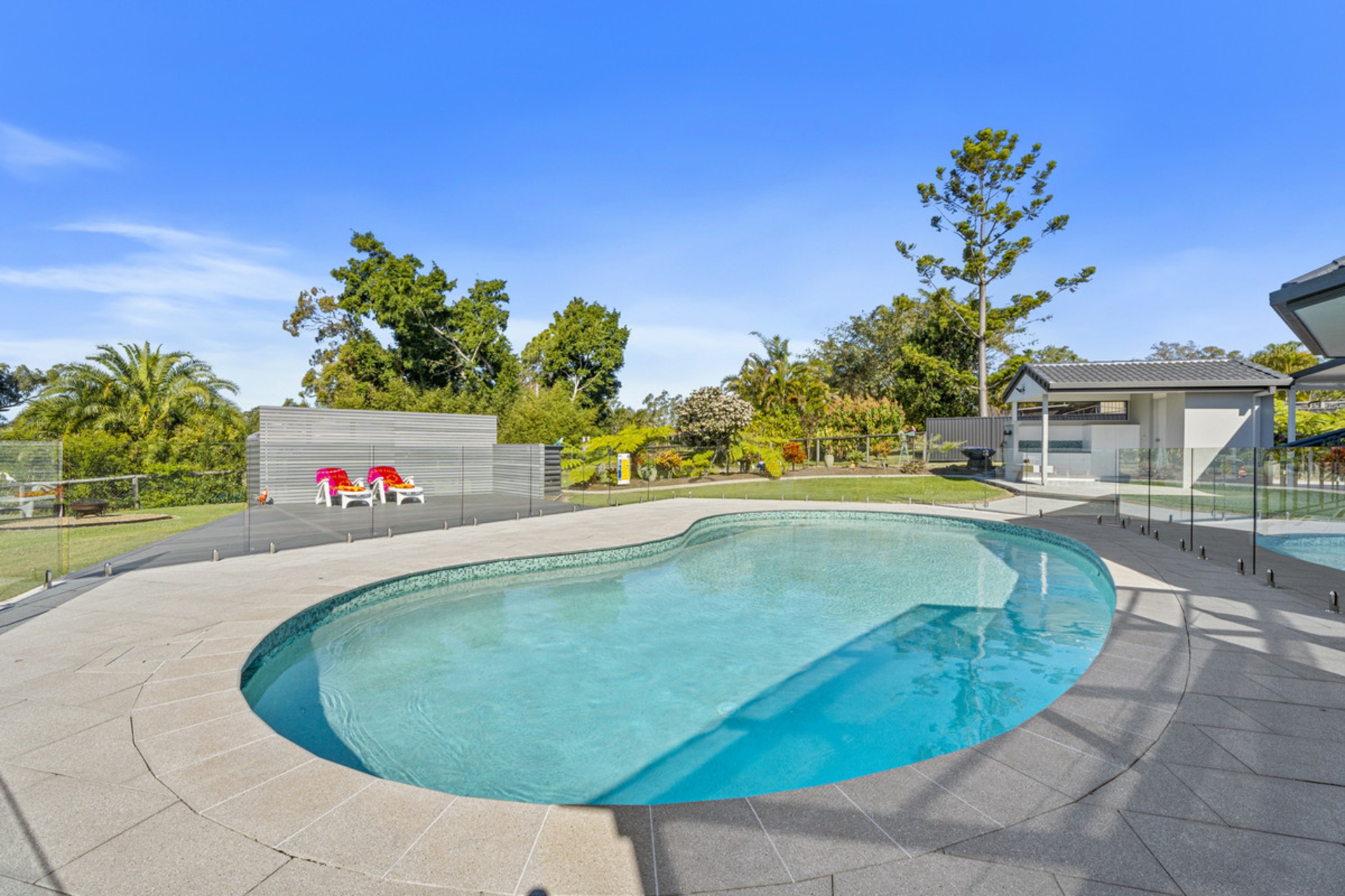 • Sparkling in ground swimming pool with compliant glass fencing and soft close gates and mood lighting